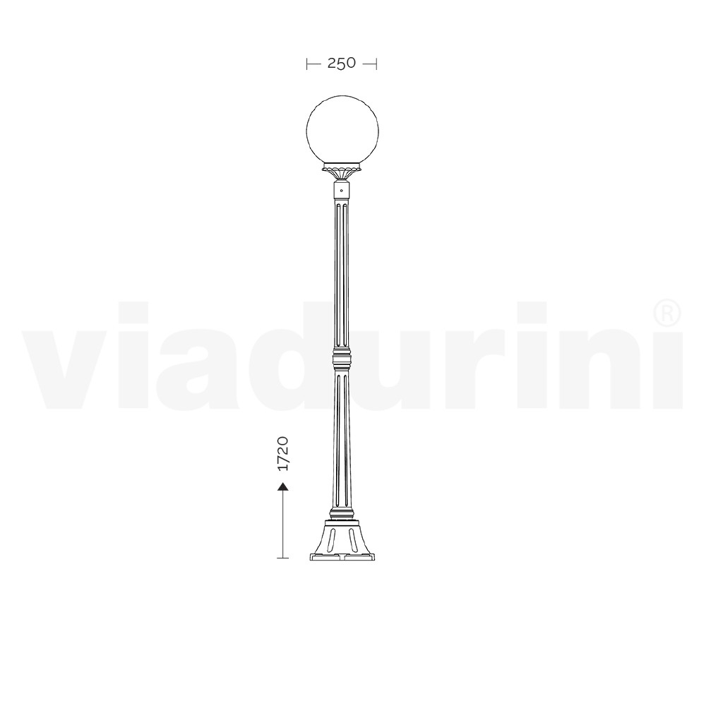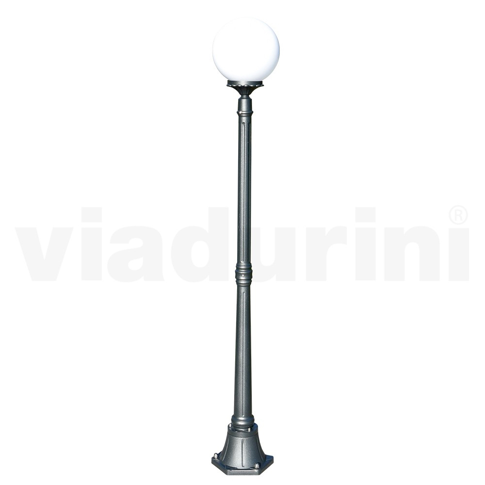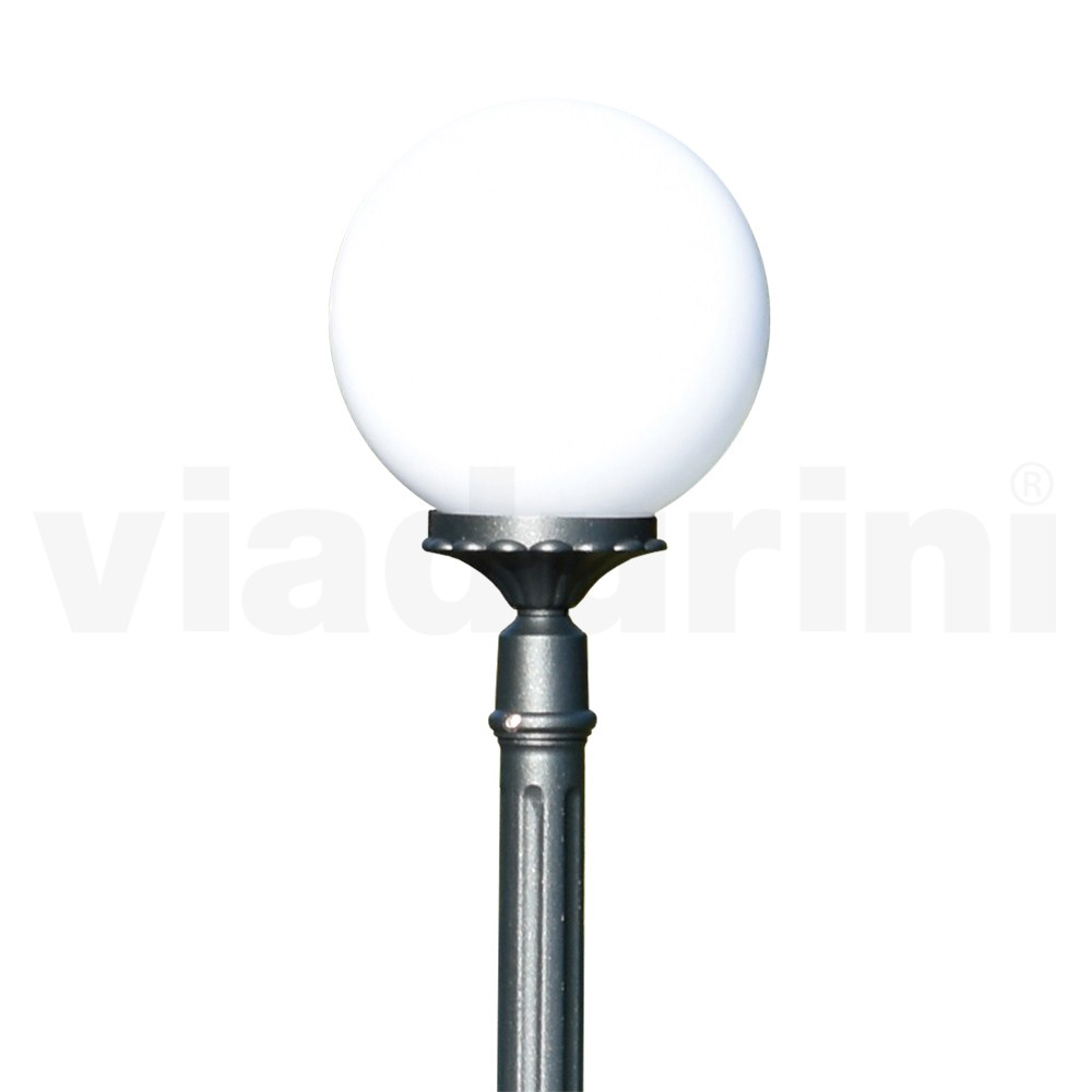 Candeeiro de jardim fabricado com estrutura em alumínio fundido com acabamento antracite e difusor esférico em acrílico opalino , inteiramente Fabricado em Itália.