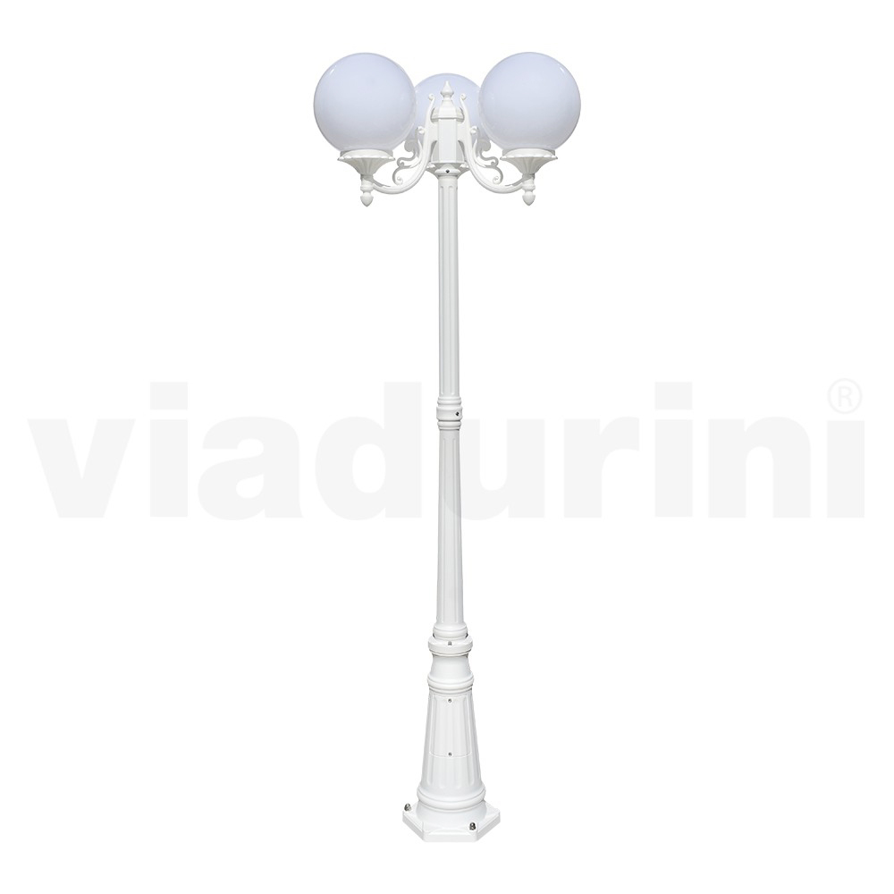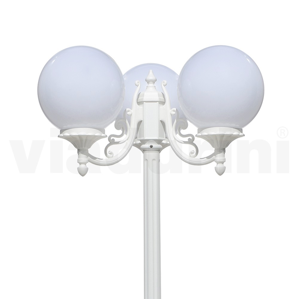 Candeeiro de jardim fabricado com estrutura em alumínio fundido e difusor esférico em acrílico opalino , inteiramente Fabricado em Itália.