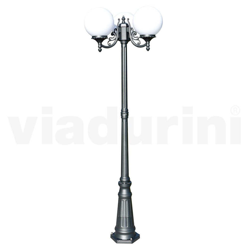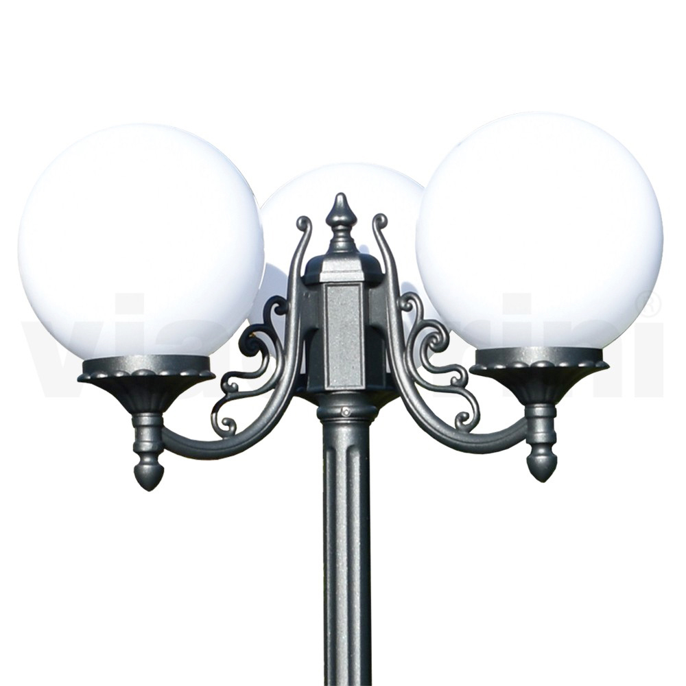 Candeeiro de jardim fabricado com estrutura em alumínio fundido com acabamento antracite e difusor esférico em acrílico opalino , inteiramente Fabricado em Itália.