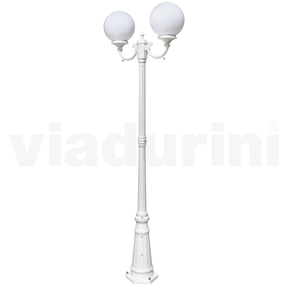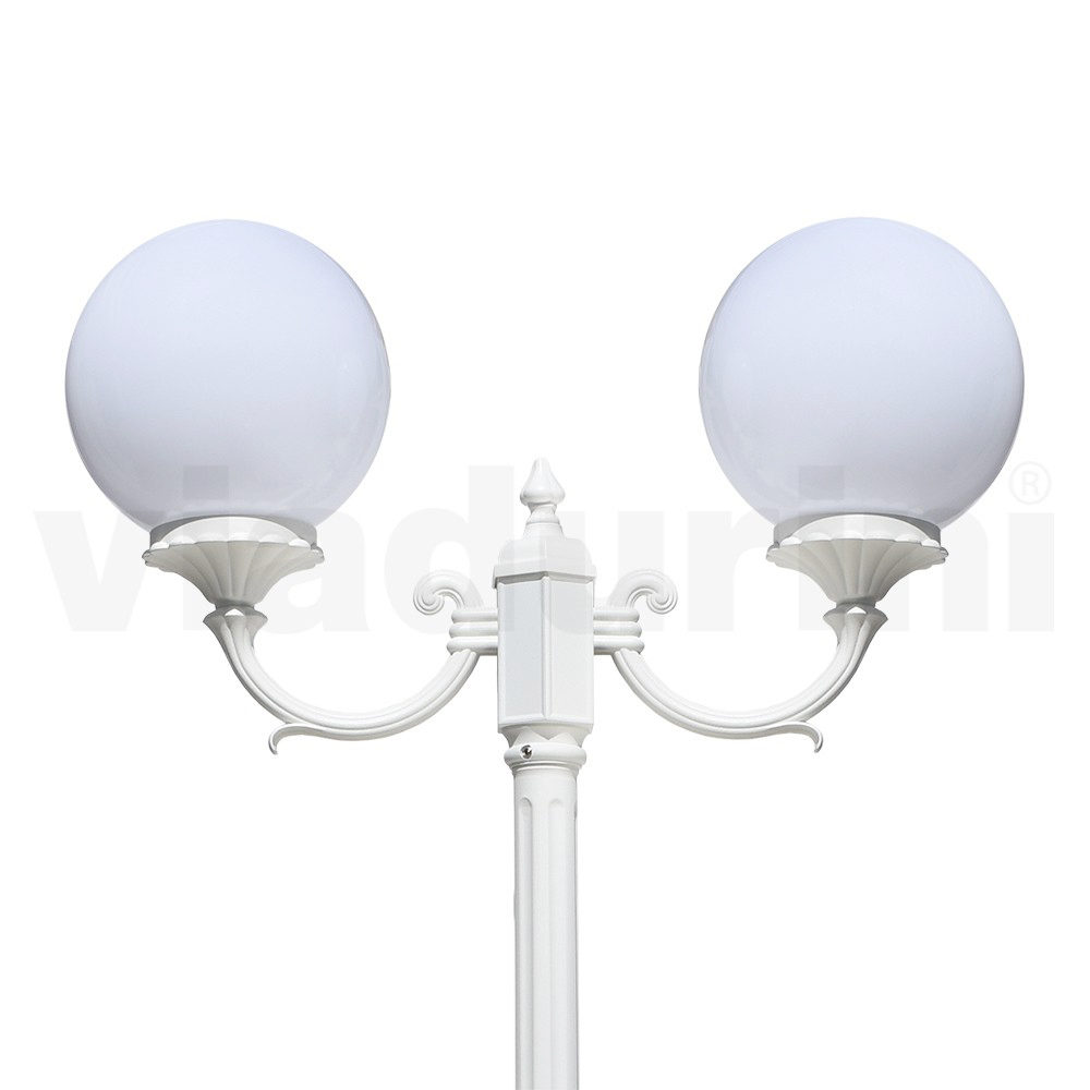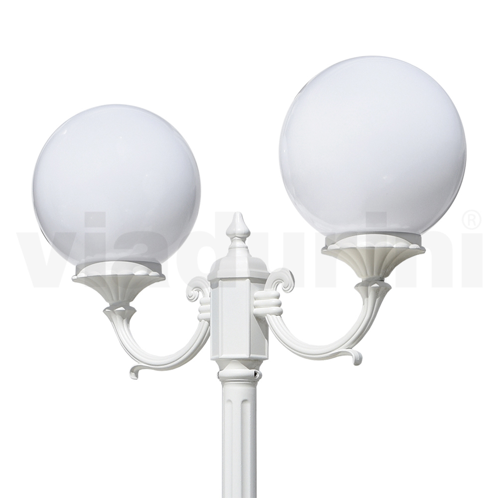 Candeeiro de jardim fabricado com estrutura em alumínio fundido e difusor esférico em acrílico opalino , inteiramente Fabricado em Itália.