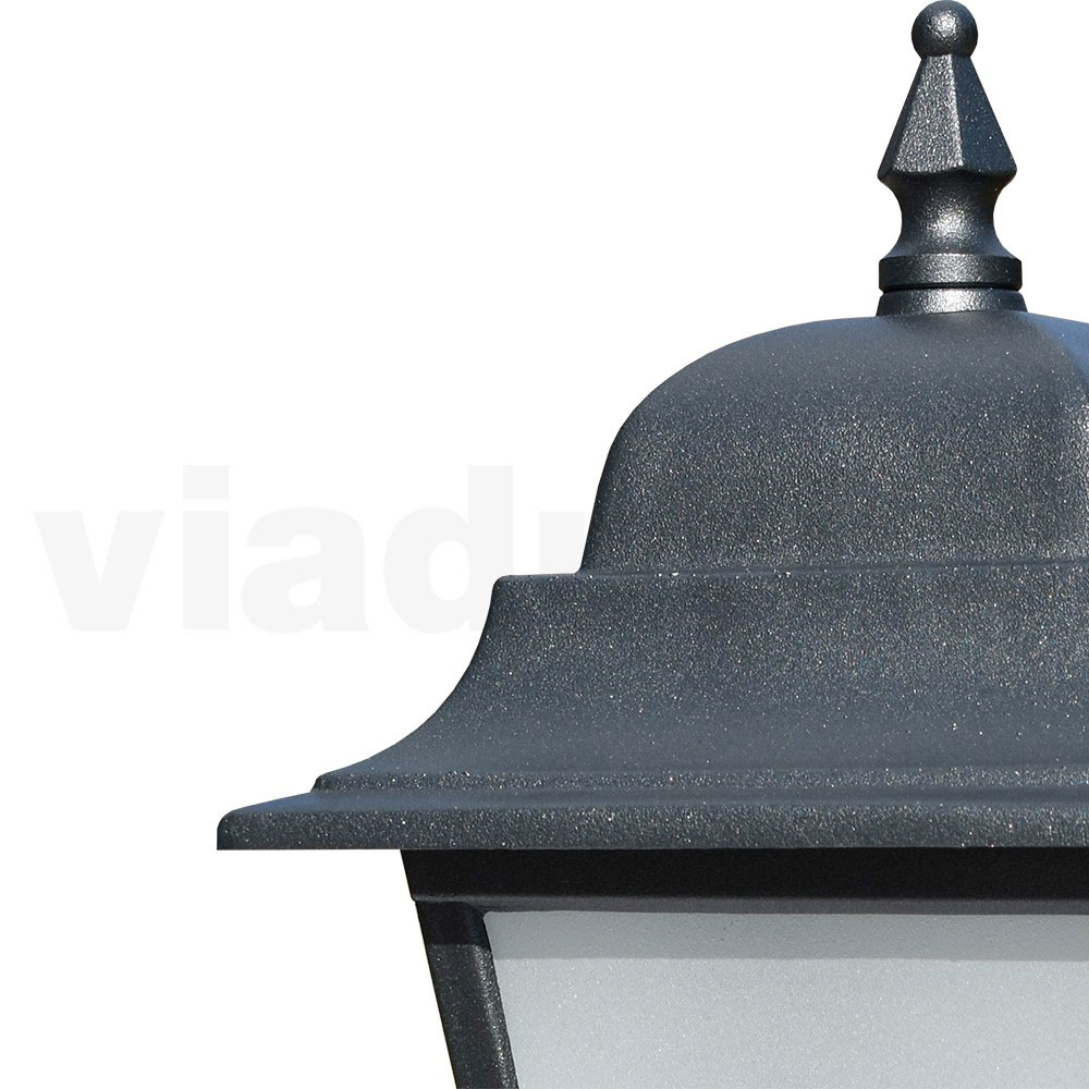 Candeeiro de jardim fabricado com estrutura em alumínio fundido com acabamento antracite e difusor em vidro jateado , inteiramente Fabricado na Itália.