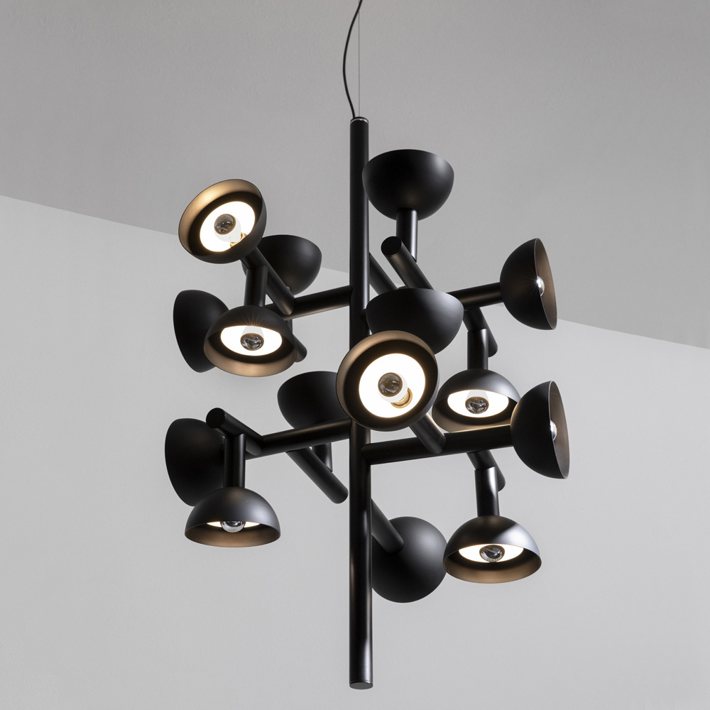 O candeeiro é feito com uma estrutura de alumínio de dois acabamentos para um design inteiramente italiano que, através da experimentação pouco convencional e da pesquisa contínua entre tradição e modernidade , é capaz de surpreender, ousar e emocionar, permitindo-lhe expressar as suas emoções através de um original e pessoal uso decorativo da luz.