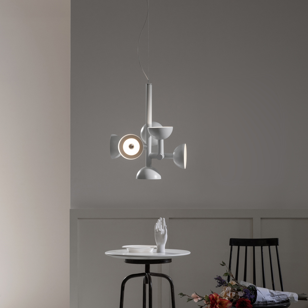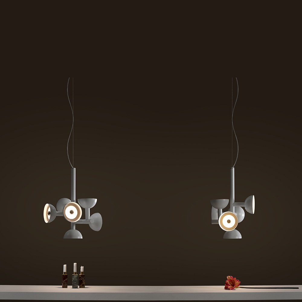 O candeeiro é feito com uma estrutura de alumínio de dois acabamentos para um design inteiramente italiano que, através da experimentação pouco convencional e da pesquisa contínua entre tradição e modernidade , é capaz de surpreender, ousar e emocionar, permitindo-lhe expressar as suas emoções através de um original e pessoal uso decorativo da luz.