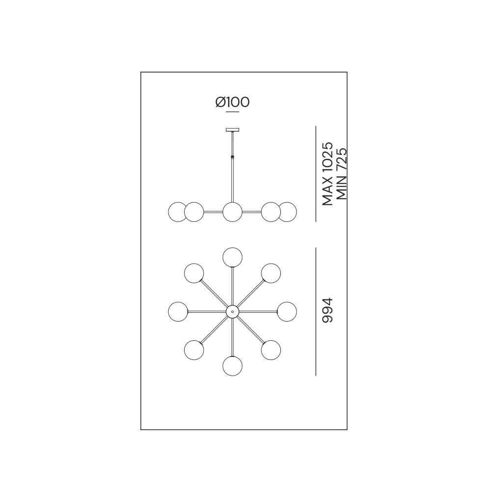 A pedido, também disponível na versão em latão antigo ou esferas de vidro revestidas a cobre e pintadas de preto.