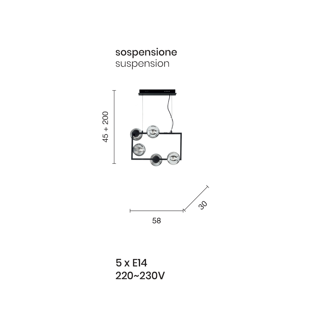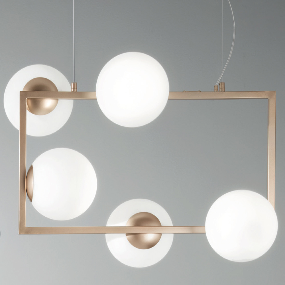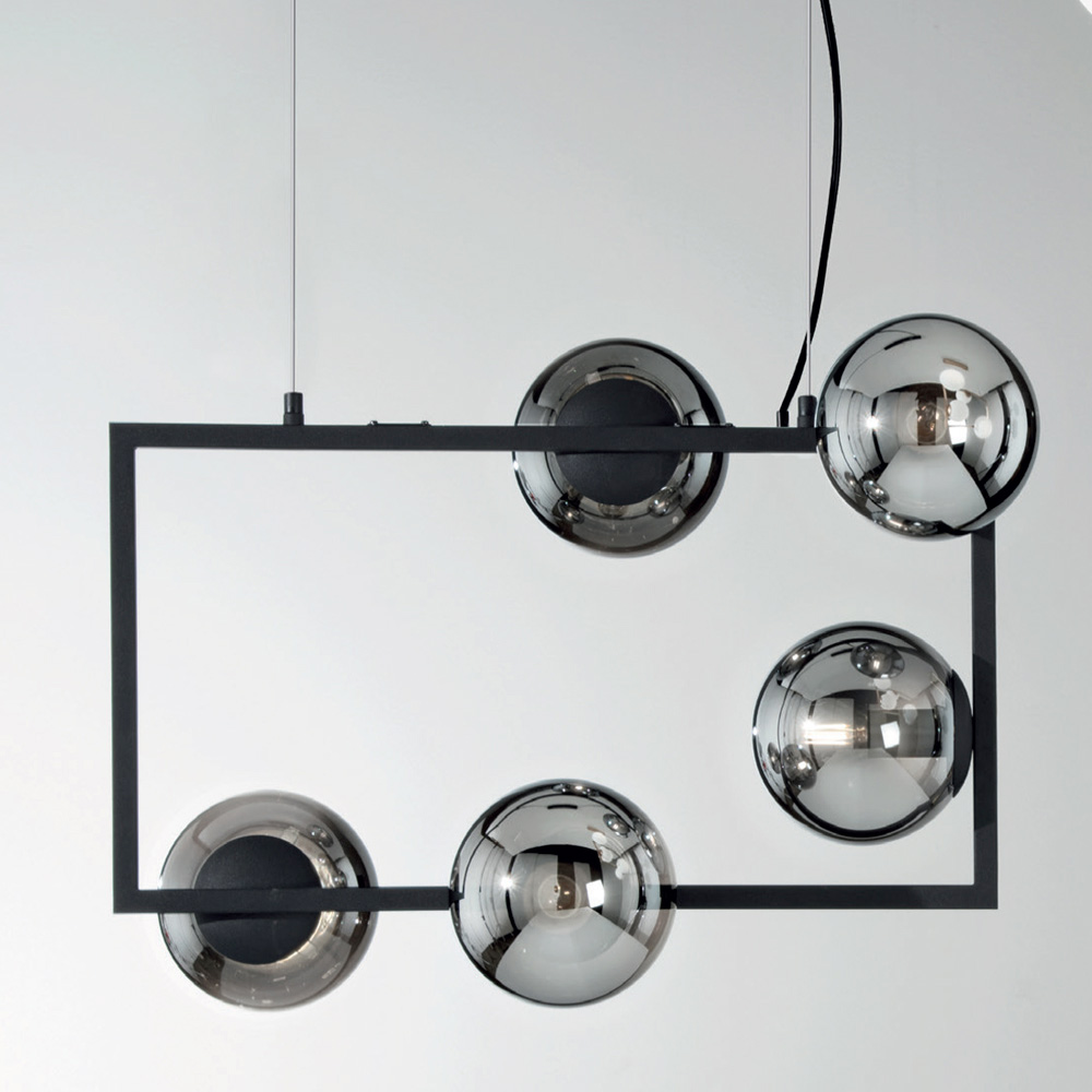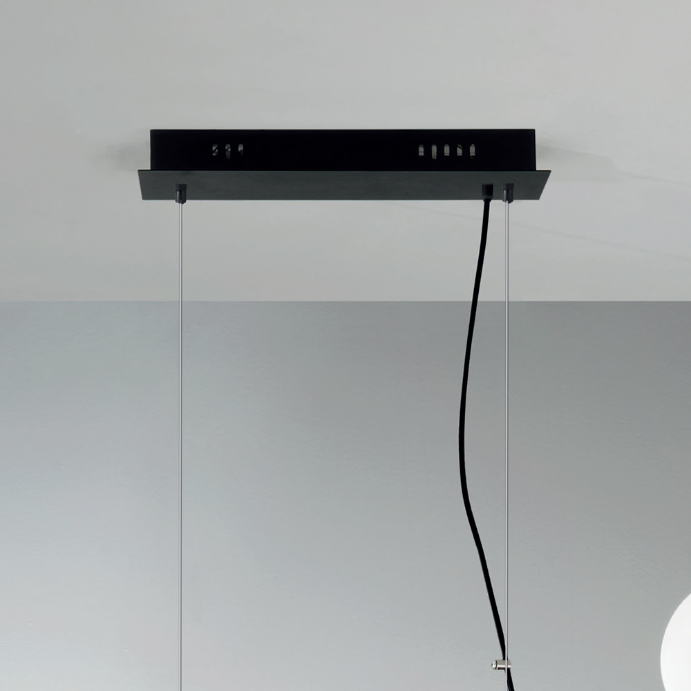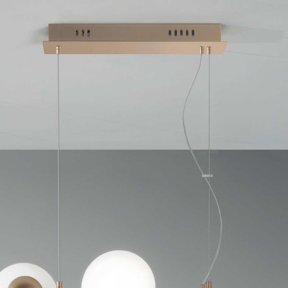 difusores esféricos de vidro soprado completos com cabos ajustáveis em altura. Da combinação perfeita entre o toque moderno do metal e a elegância atemporal do vidro soprado,