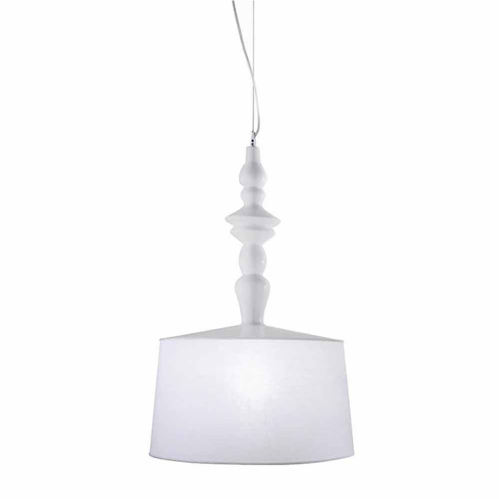 O candeeiro é feito de cerâmica branca brilhante como um material que representa a origem, a maleabilidade, a criação e que nos remete diretamente às origens da nossa cultura. Abajur em linho.