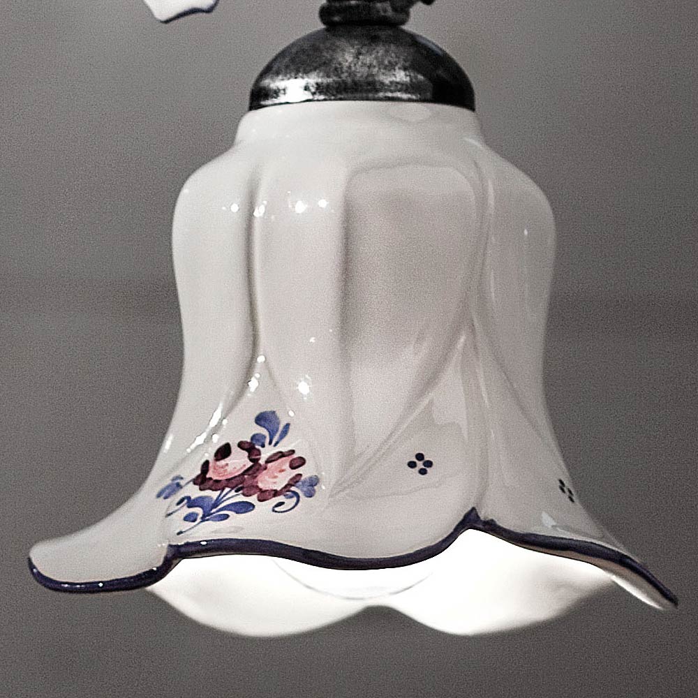 Luminária suspensa em metal e cerâmica com rosas pintadas à mão feita na Itália pela Ferroluce.