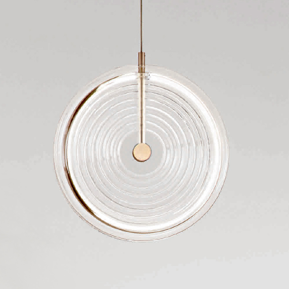 metal pintado com acabamento dourado, vidro decorado com linhas concêntricas com luz LED e