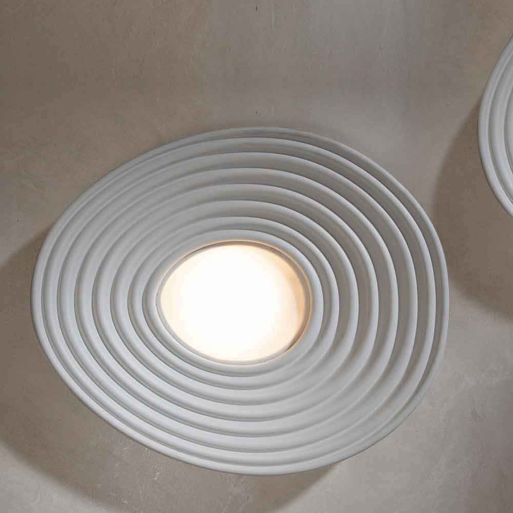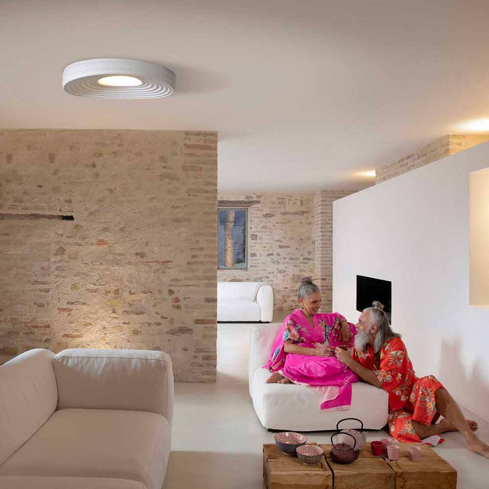 O candeeiro é feito de gesso branco opaco e difusor pmma branco de um design inteiramente italiano que, através da experimentação pouco convencional e da pesquisa contínua entre tradição e modernidade , é capaz de surpreender, ousar e emocionar, permitindo-lhe expressar as suas emoções através de um original e pessoal uso decorativo da luz.