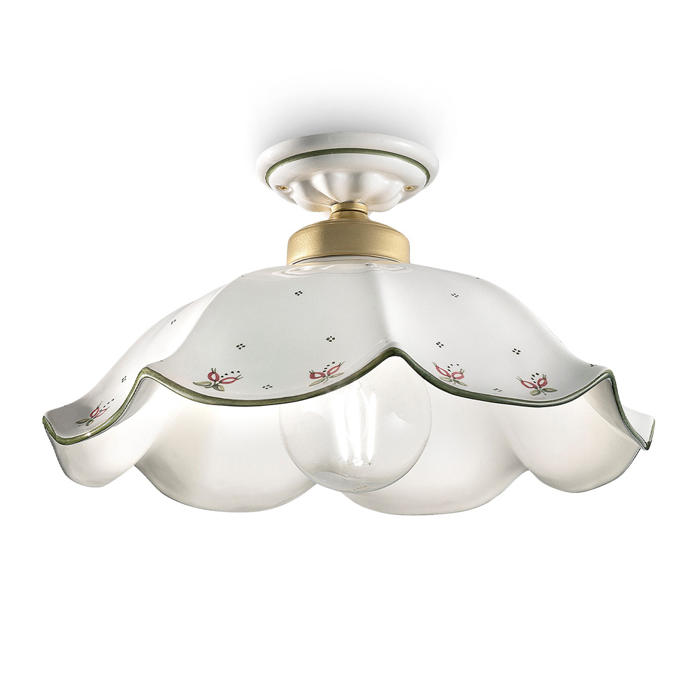 Lâmpada de teto de cerâmica ondulada vintage pintada à mão feita na Itália por Ferroluce.
