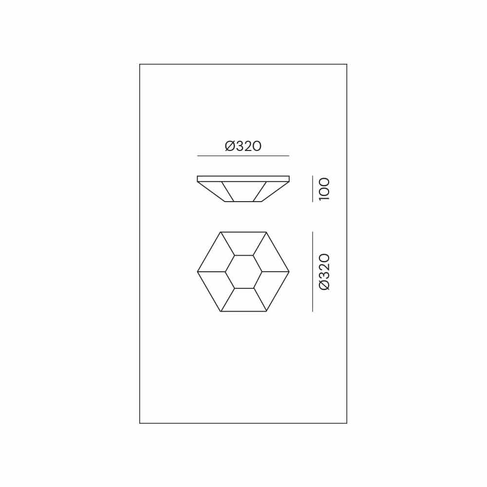 Candeeiro de tecto hexagonal com 2 luzes em latão e vidro de design artesanal made in Italy.
