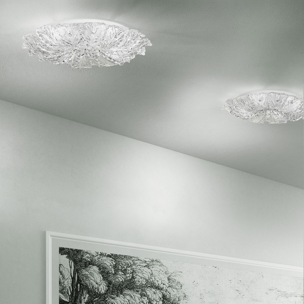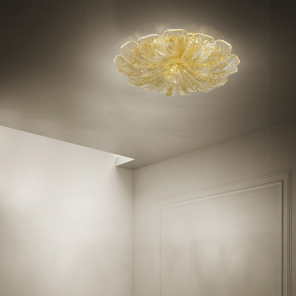 Luminária de teto artesanal em vidro e metal Veneza Made in Italy.