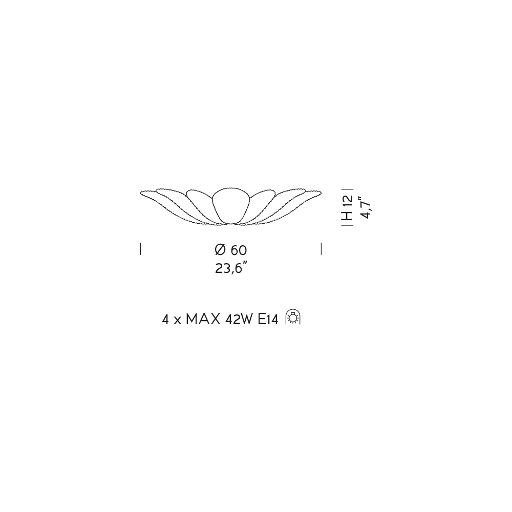 Tamanhos disponíveis:- diâmetro 60 x H 12 cm (4 luzes);