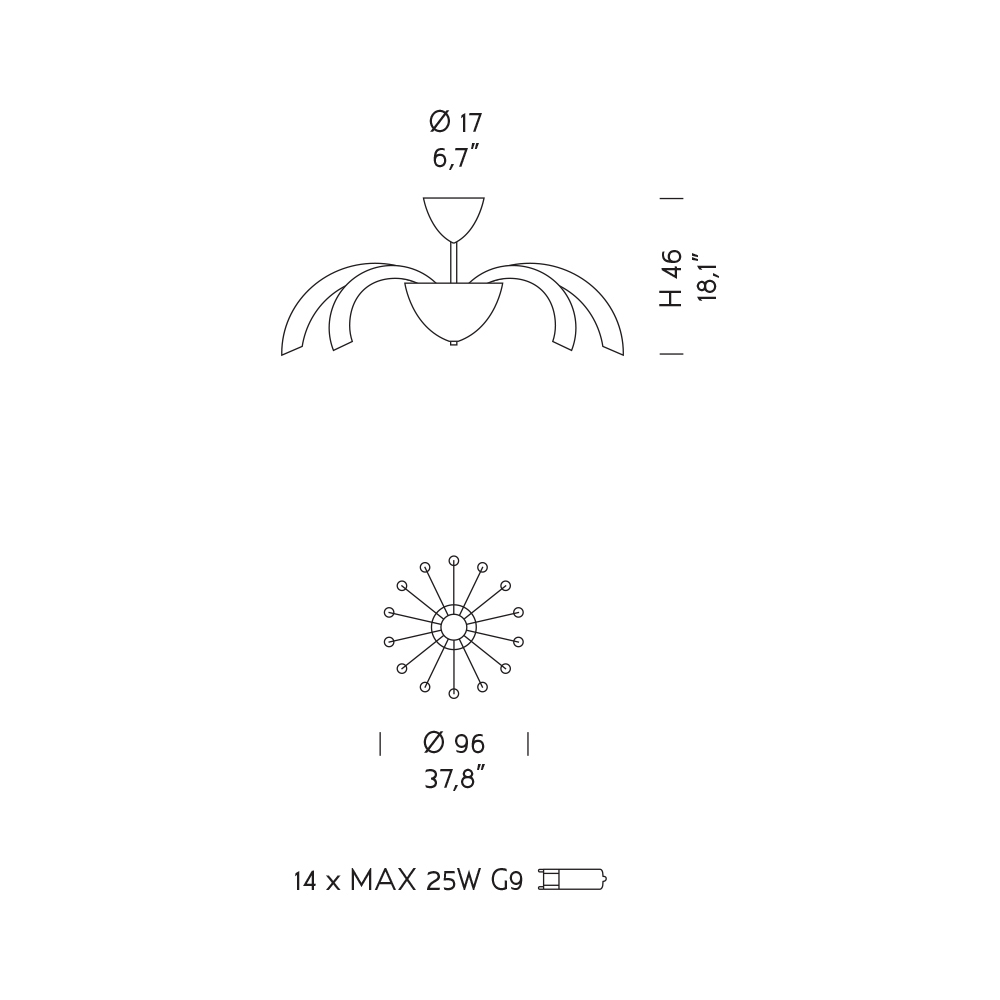 Lâmpadas (não incluídas) : 14 x MAX 25W G9