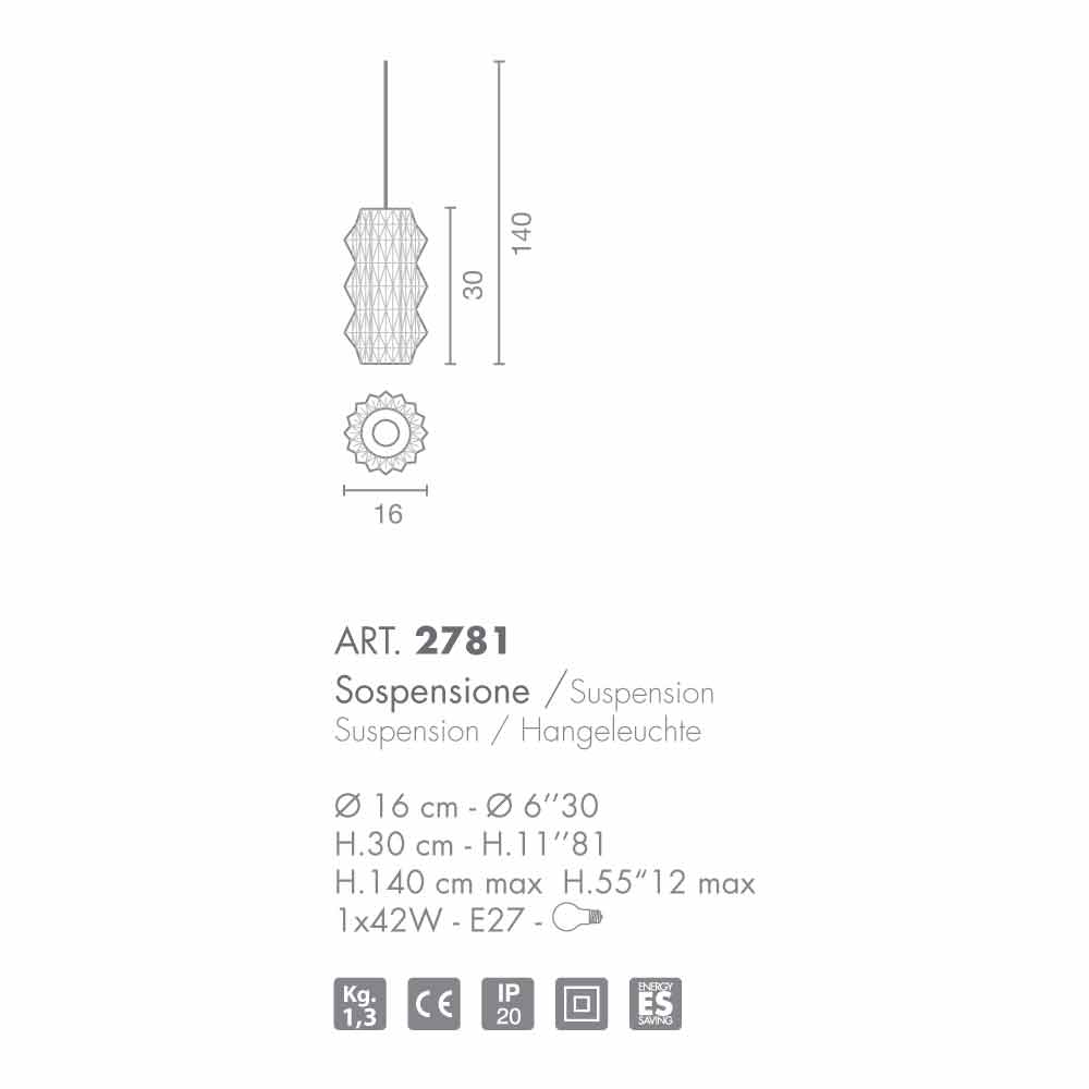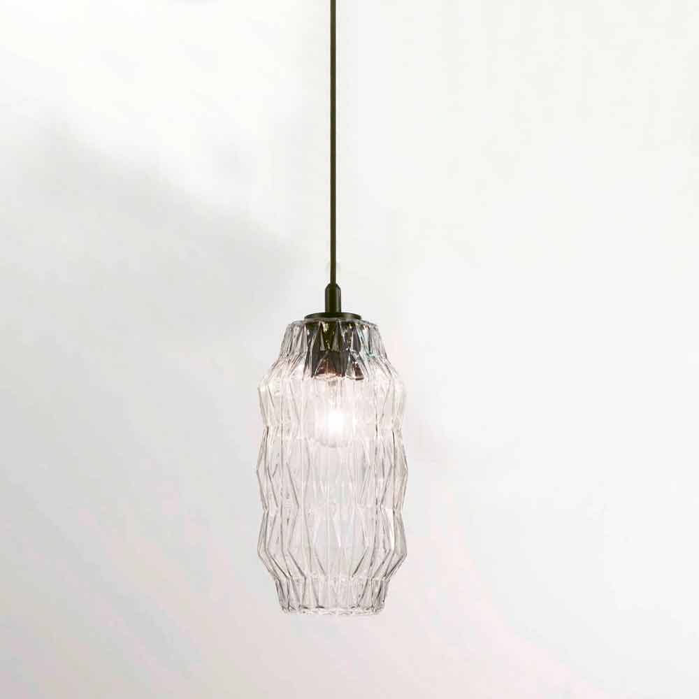 Candeeiro pingente de vidro soprado Selene Origami, Ø16 H 30 / 140cm, design moderno.