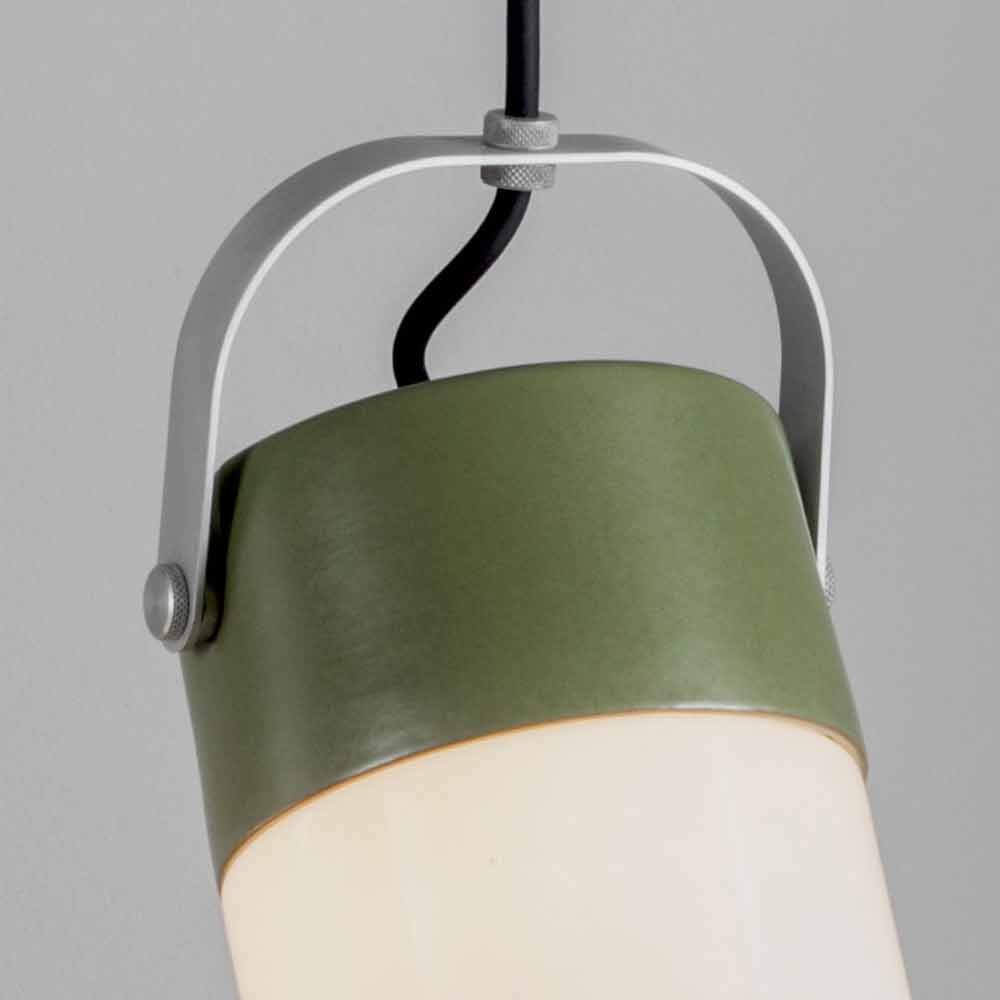 A Toscot projeta uma lâmpada "de balanço" com uma linha geométrica simples e cilíndrica. É chamada de Swing como a famosa dança, no rock inglês, e é uma lanterna montada no sistema em um cabo de aço com uma alça que permite esse movimento ondulante. Os materiais utilizados são alumínio, terracota com decorações frias e esmaltes que fecham o vidro difusor. Também está disponível como uma luz de parede e também pode ser usado para projetos ao ar livre.