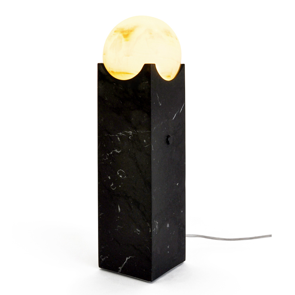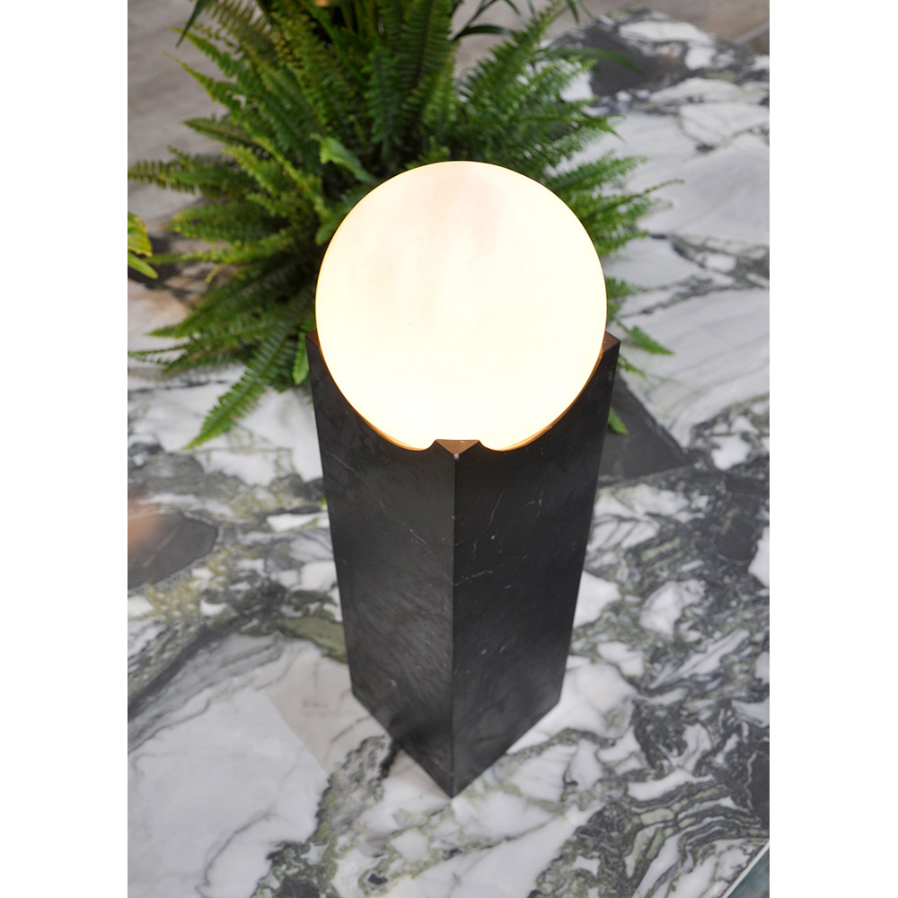 Este candeeiro de mesa representa uma fusão entre a majestade do mármore preto e a pureza de uma esfera de luz. O design arrojado e moderno cria um contraste visual forte e equilibrado, perfeito para a decoração contemporânea de quem gosta de estar rodeado de beleza e luxo .