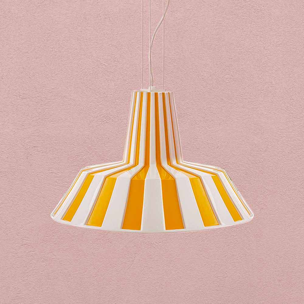 O design deste candeeiro é moderno, baseado em contrastes, mas também tem um vago toque retro. Com Budin pode dar espaço à sua imaginação, decorando a sala, a sala de estar ou a cozinha com pontos de luz de cores vivas e originais. É feito na Itália e é feito de cerâmica, com acabamento em dois tons. Também é equipado com uma parábola refletora interna e cabos de suporte em aço inoxidável que permitem o ajuste da altura no momento da instalação.