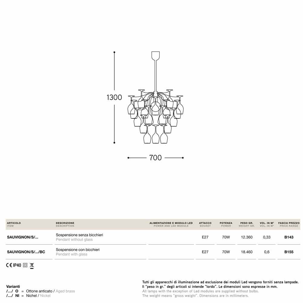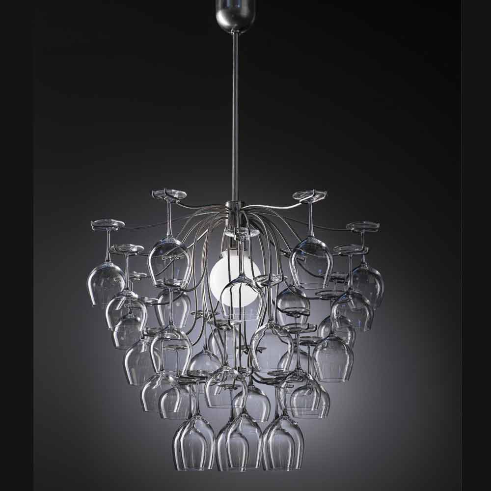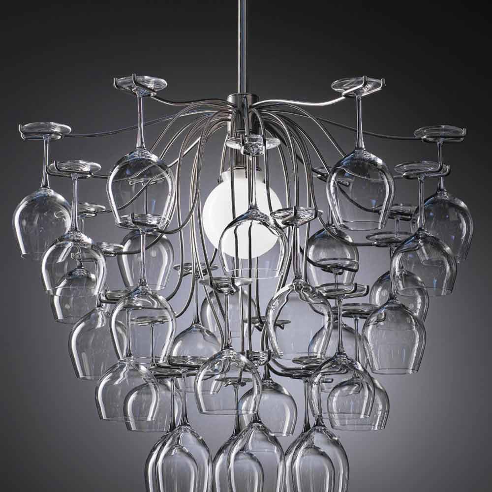 Lâmpada pingente de design moderno com 30 copos Sauvignon, fabricada na Itália
