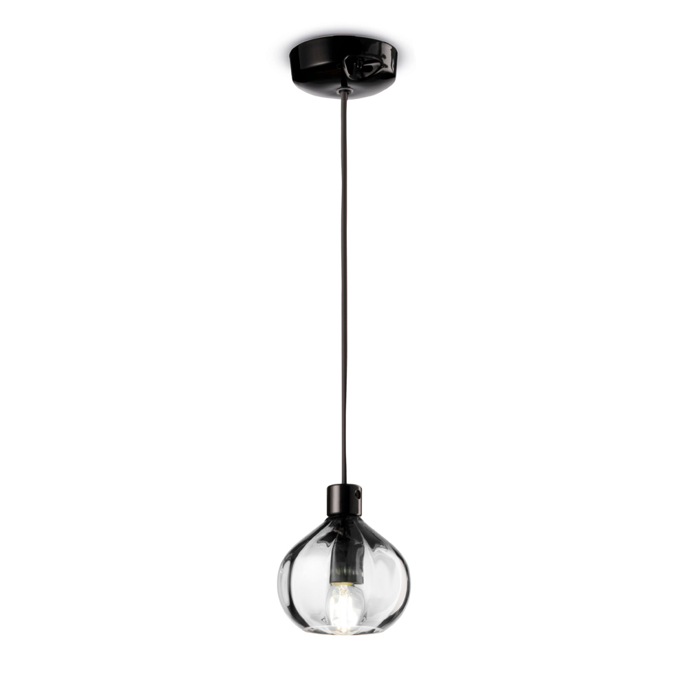 Esta luminária pendente é a essência da transparência com um toque de modernidade. O vidro, com a sua natureza pura e intemporal, é aqui moldado numa esfera que capta e reflete a luz, criando um jogo de brilho e sombras que confere dinamismo ao ambiente. A versão âmbar, com a sua tonalidade quente e acolhedora, é perfeita para criar ambientes íntimos e descontraídos. A variante transparente, porém, emite uma luz cristalina, ideal para iluminar com um toque de classe minimalista.