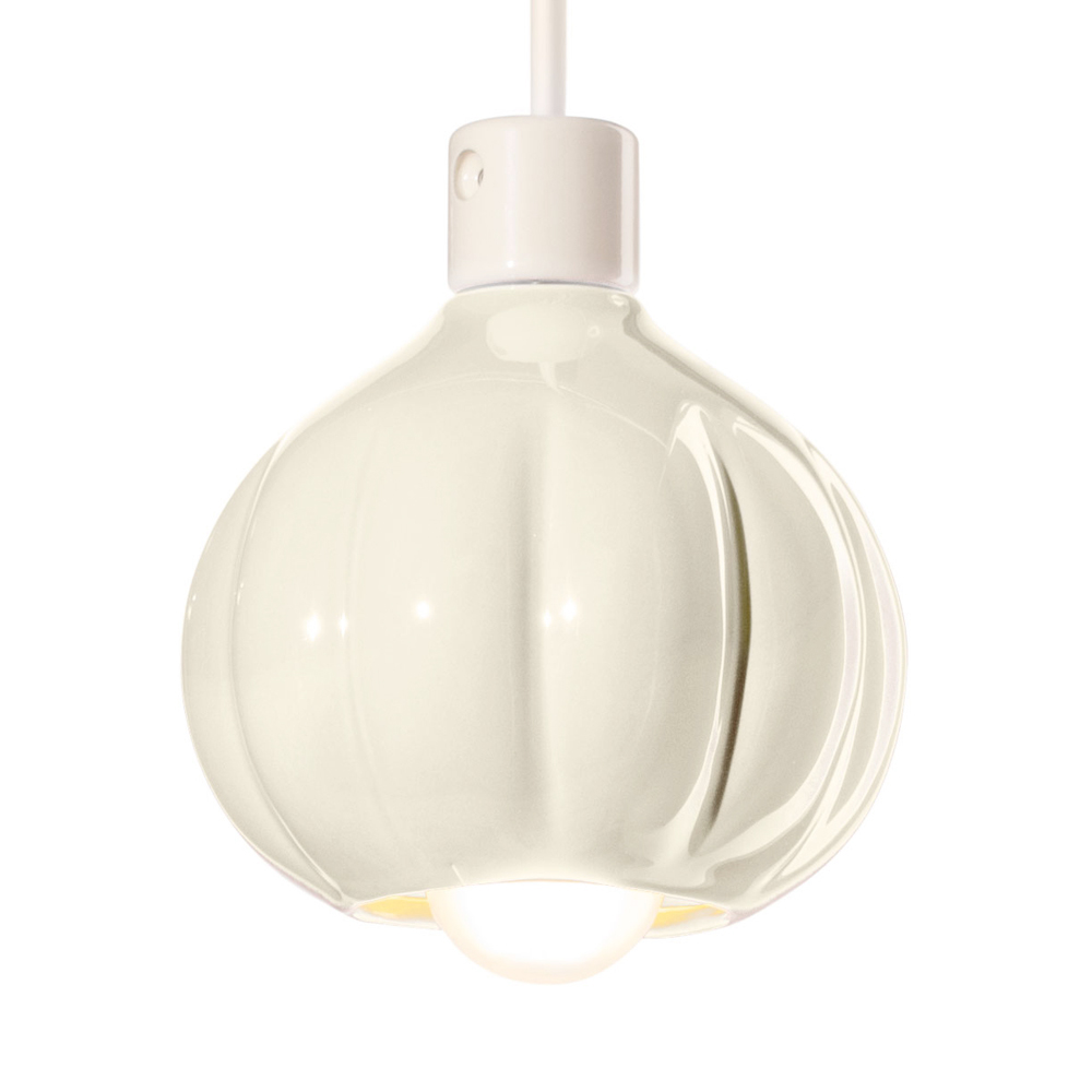 O aspecto liso e brilhante da cerâmica é resultado de um trabalho cuidadoso, que não só acrescenta um toque de brilho visual, mas também garante durabilidade ao longo do tempo. O candeeiro pende graciosamente, suspenso por um cabo elegante que acrescenta um elemento de design limpo e moderno, permitindo que o candeeiro se torne um ponto focal numa divisão sem dominar outros elementos decorativos.