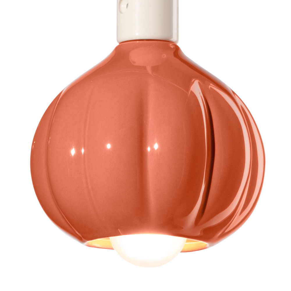Esta luminária pendente de cerâmica é a personificação da elegância funcional. A sua silhueta arredondada e os sulcos suaves conferem-lhe um apelo orgânico, enquanto as cores disponíveis integram-se harmoniosamente com qualquer interior Selaròn. Cada peça, esculpida com habilidade, reflete uma história do artesanato italiano , tornando cada lâmpada única.