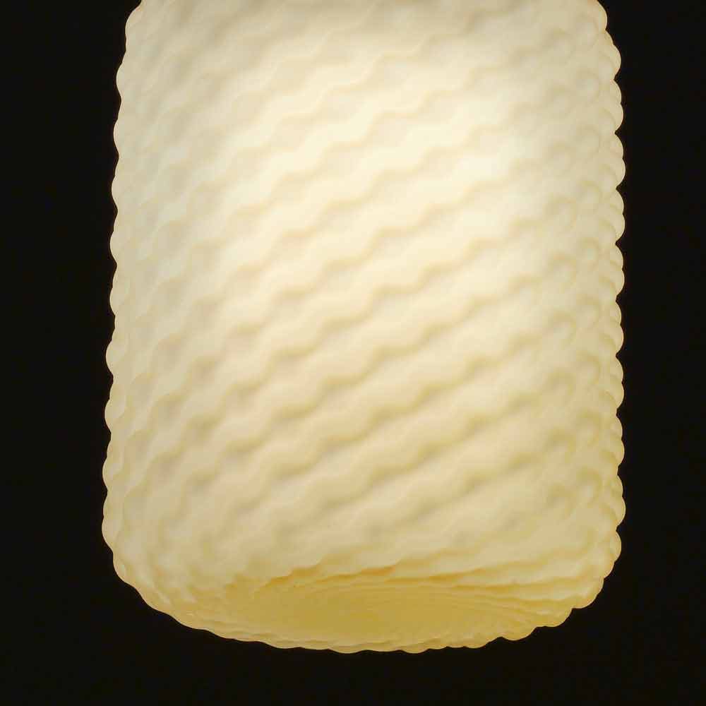 Rica coleção de lâmpadas de vidro soprado com uma manufatura especializada em favo de mel que adorna o próprio vidro. O tom de vidro pode ser cilíndrico em dois tamanhos e também em um esférico. Além disso, está disponível em três cores acetinadas: branco, âmbar e fumado.