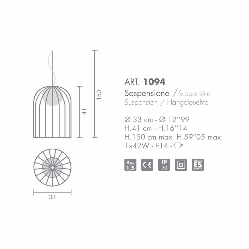 Candeeiro suspenso Selene Kluvi em vidro soprado, Ø33 H 41/150 cm, design moderno.