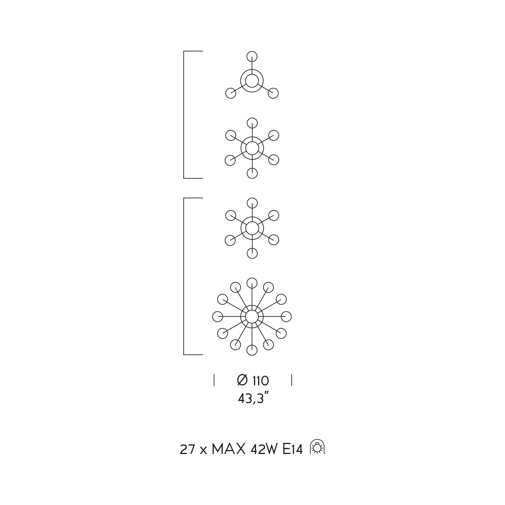 Lâmpadas (não incluídas) : 27 x MAX 42W E14