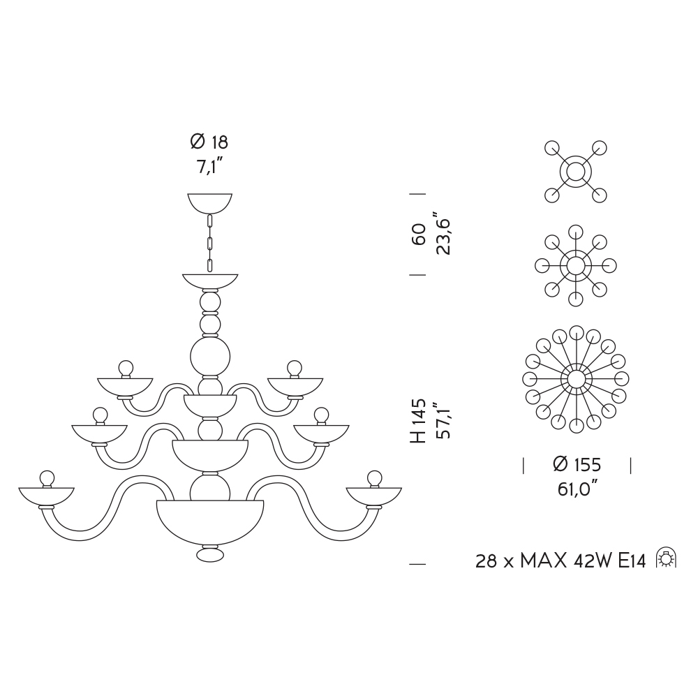Lâmpadas (não incluídas) : 28 x MAX 42W E14