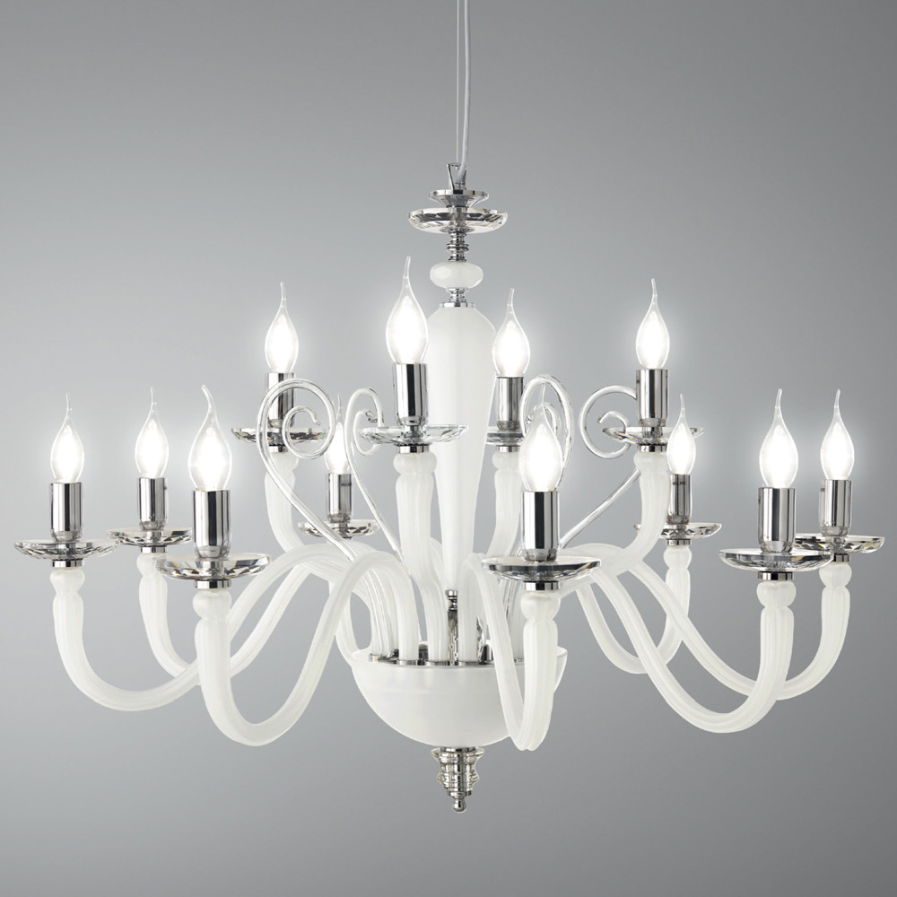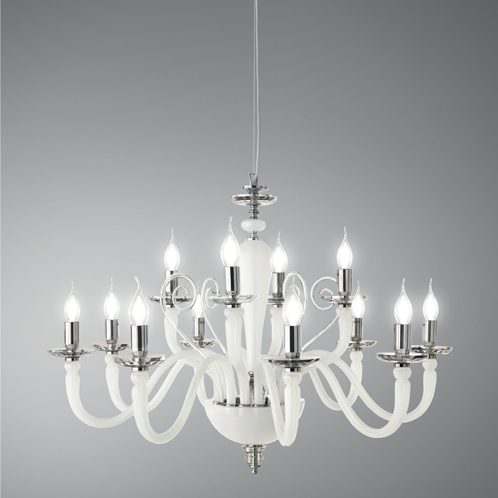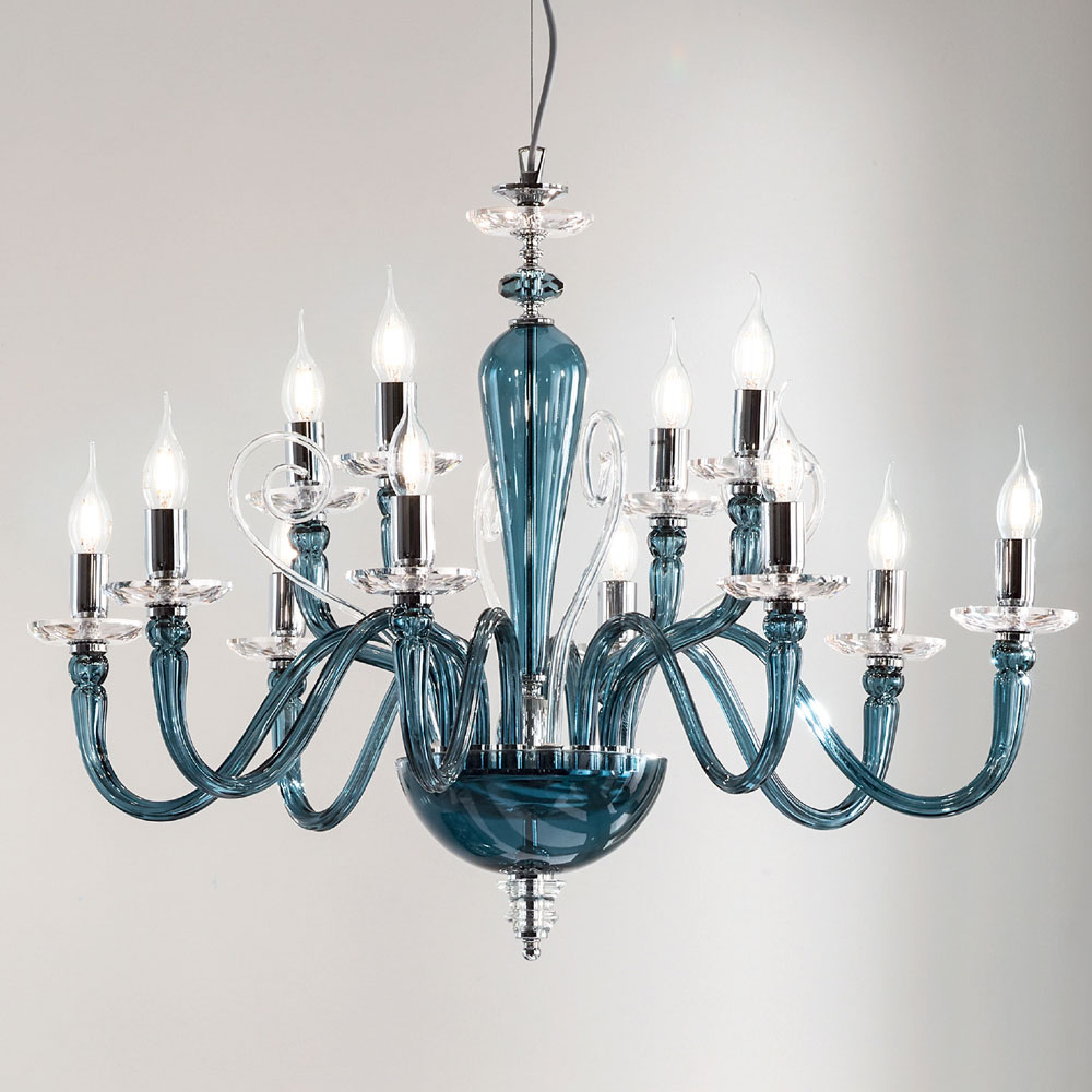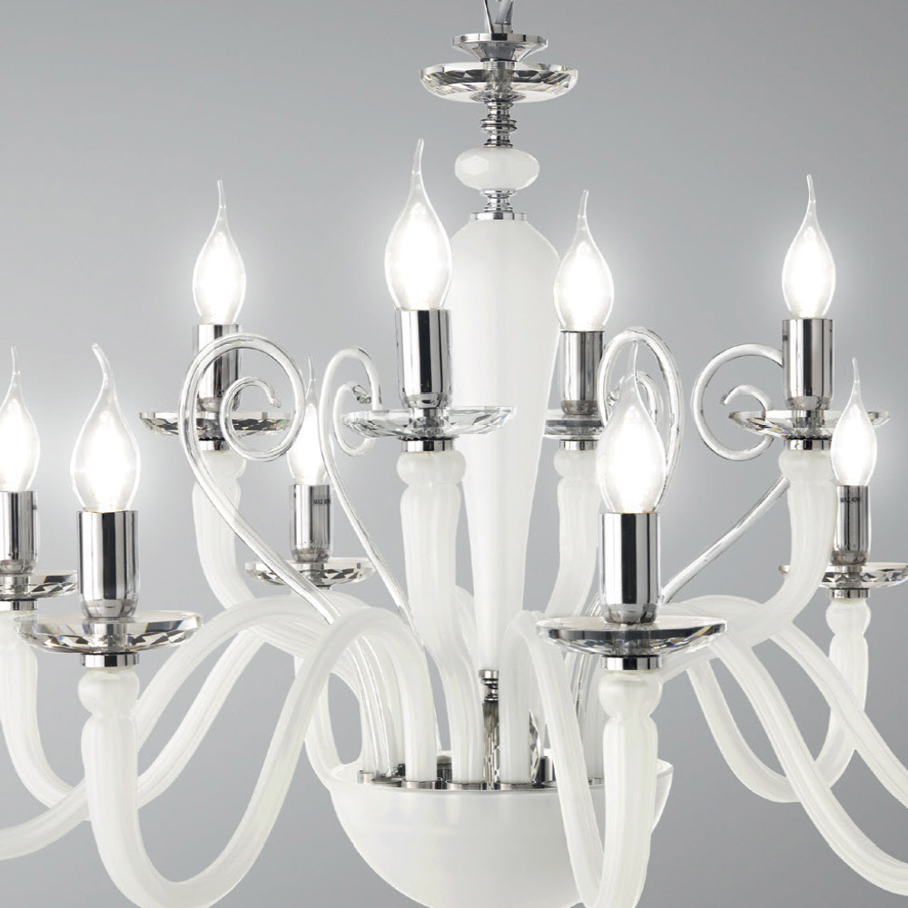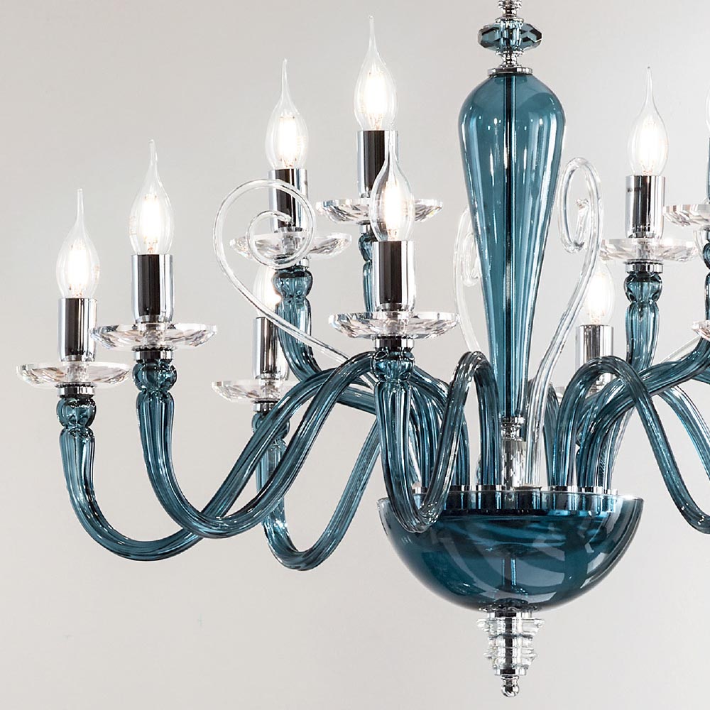 Lustre suspenso clássico em vidro artesanal e acabamentos cromados, fabricado na Itália.