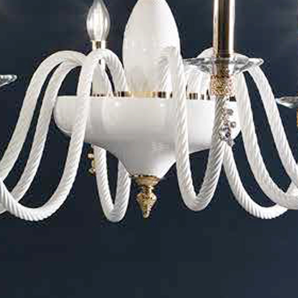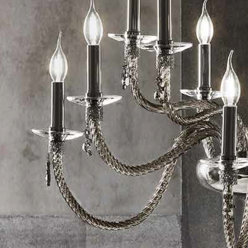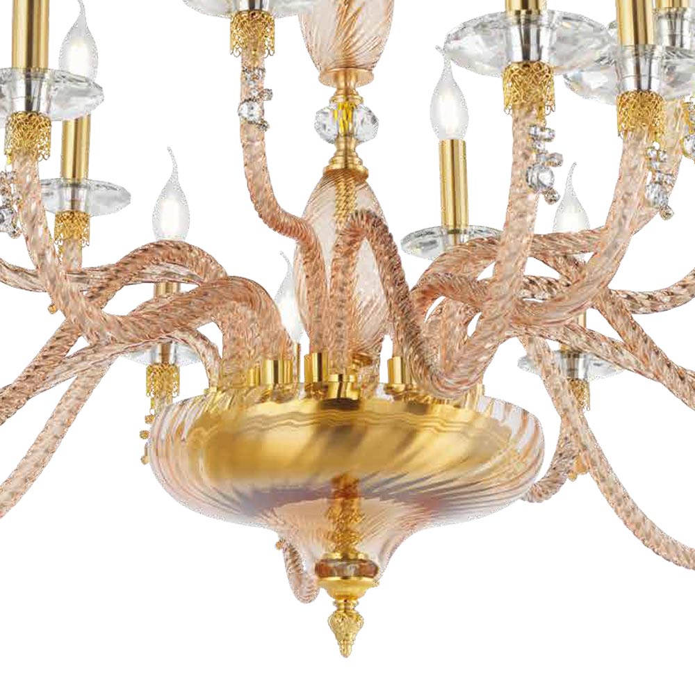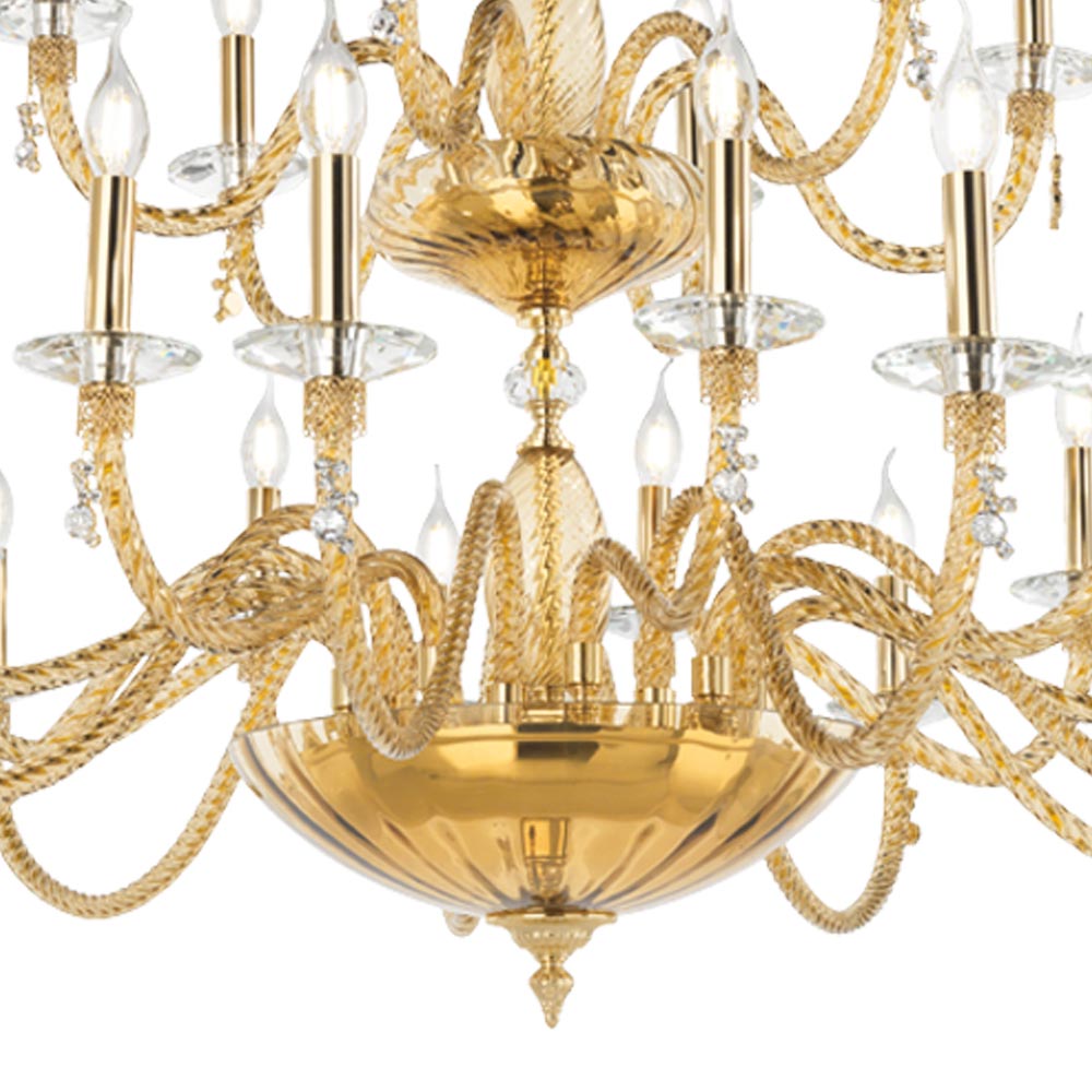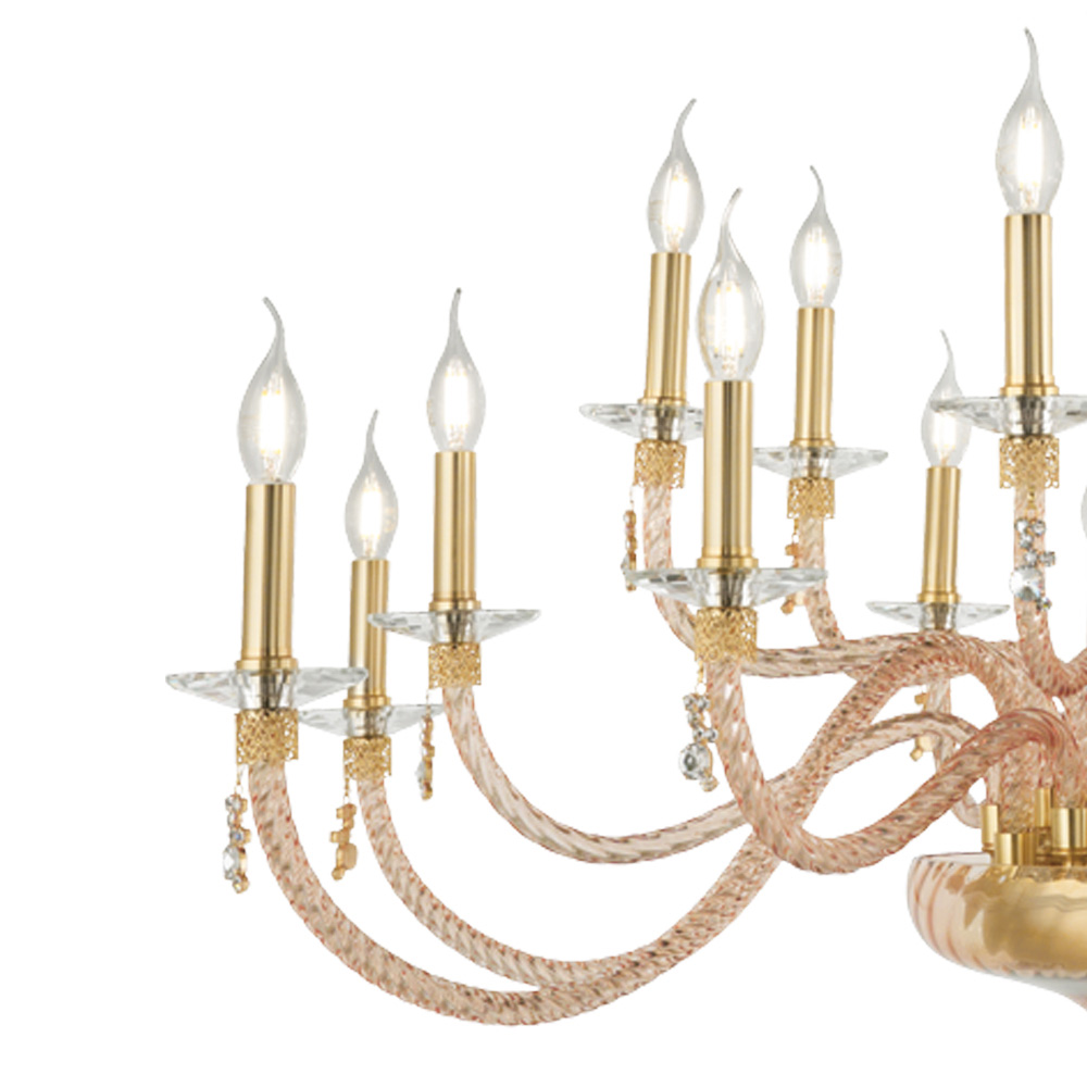 Lustre de 24 luzes em vidro soprado e detalhes em joias, luxo italiano.