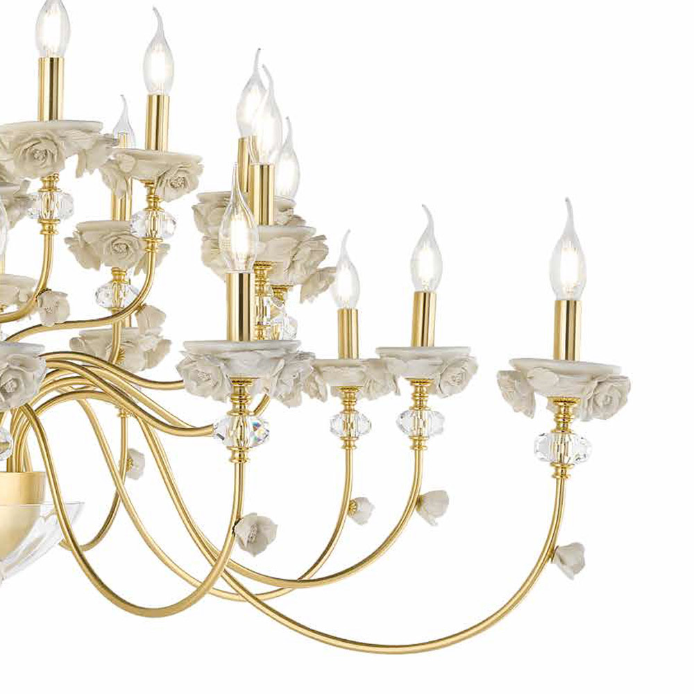 Lustre de 30 luzes em porcelana e vidro soprado, luxo feito na Itália.