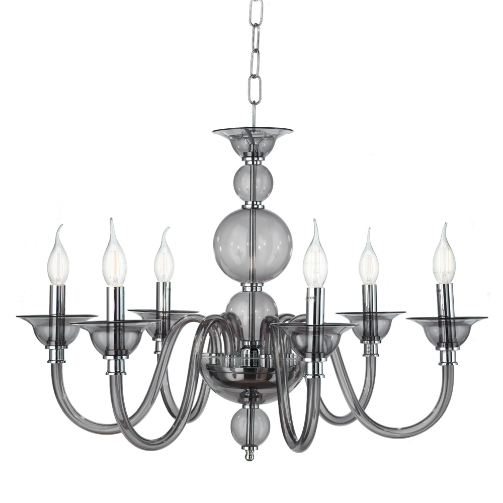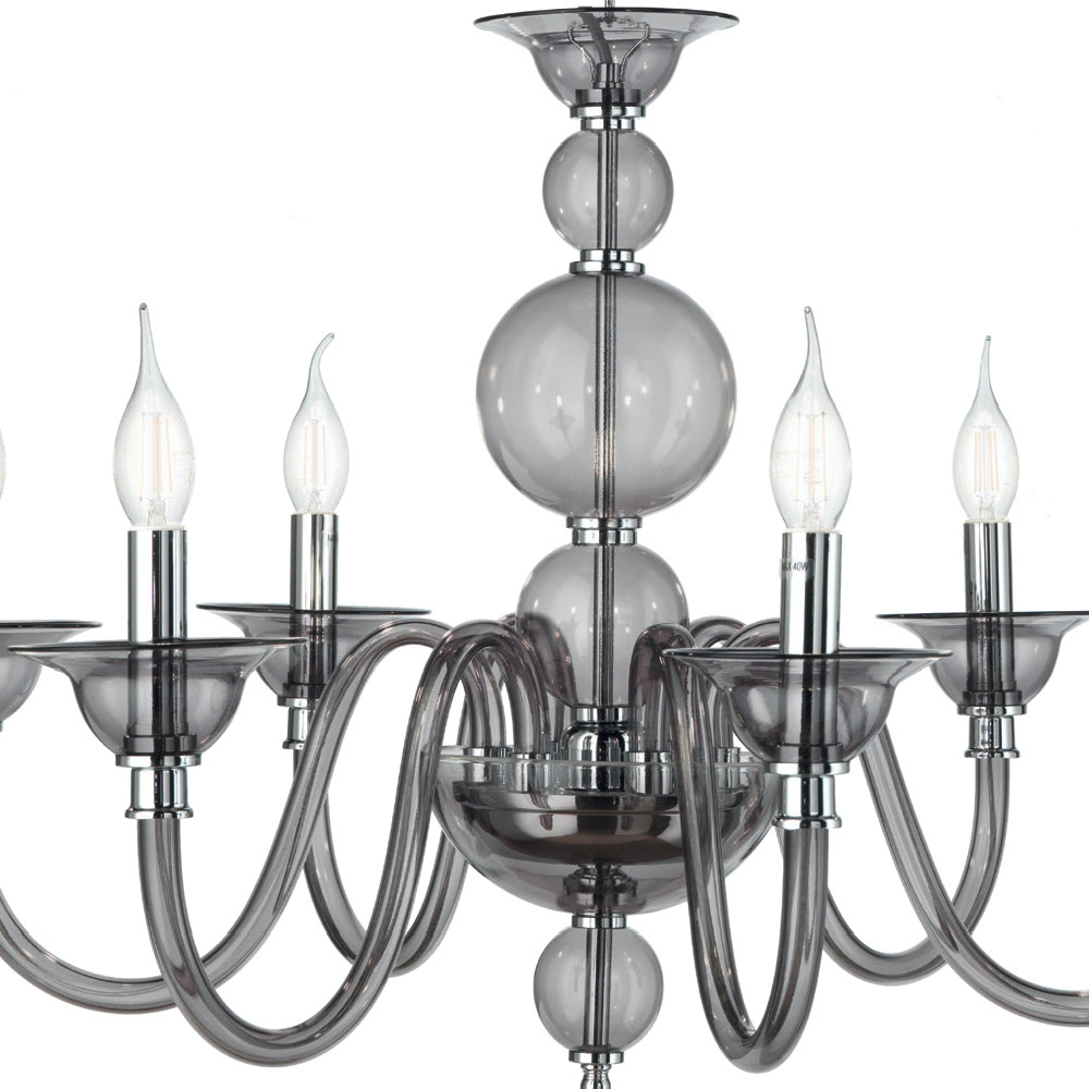 Lustre clássico de 6 luzes em metal cromado e vidro fumê feito à mão, fabricado na Itália.