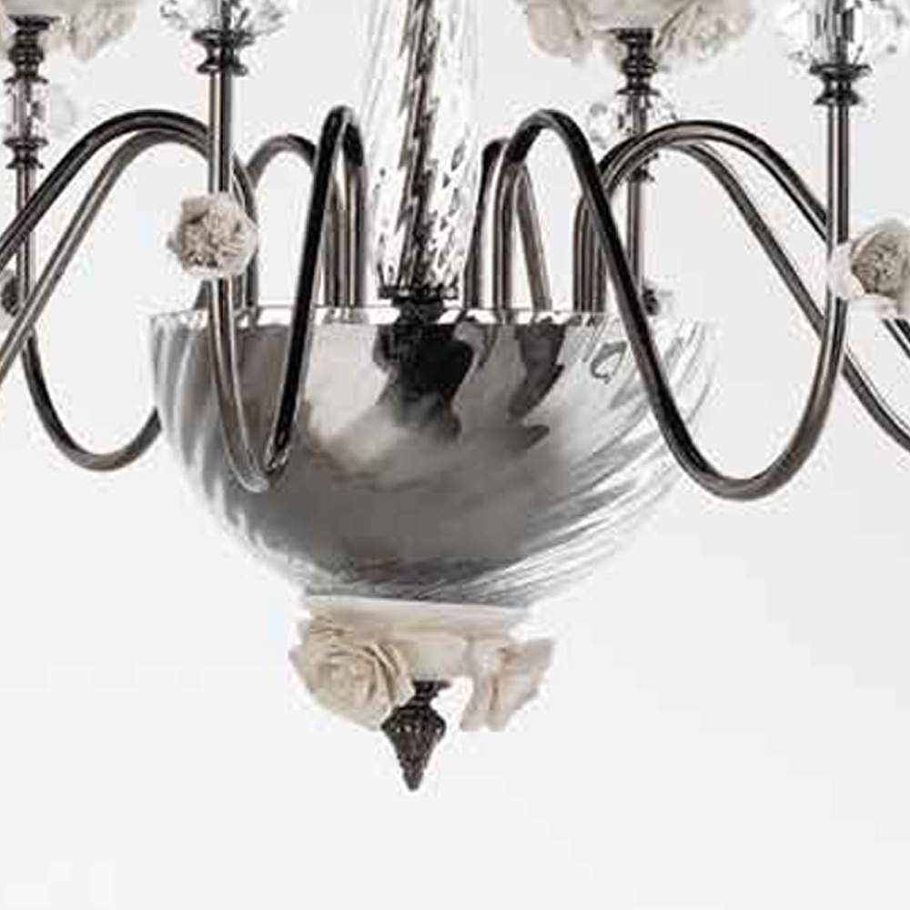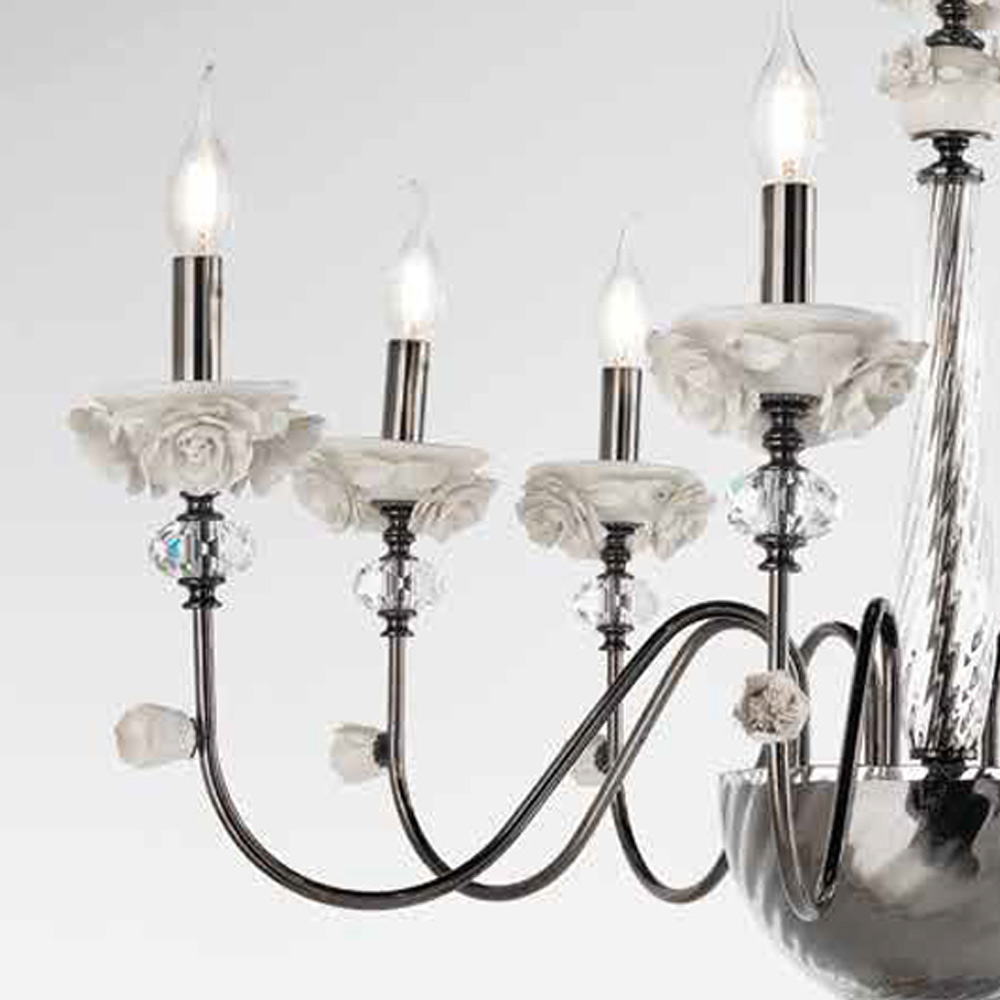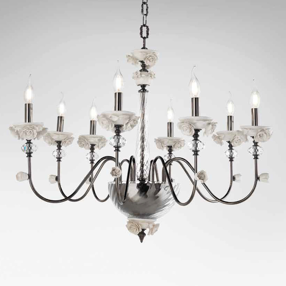 Lustre de 8 luzes em porcelana e vidro soprado, luxo feito na Itália.