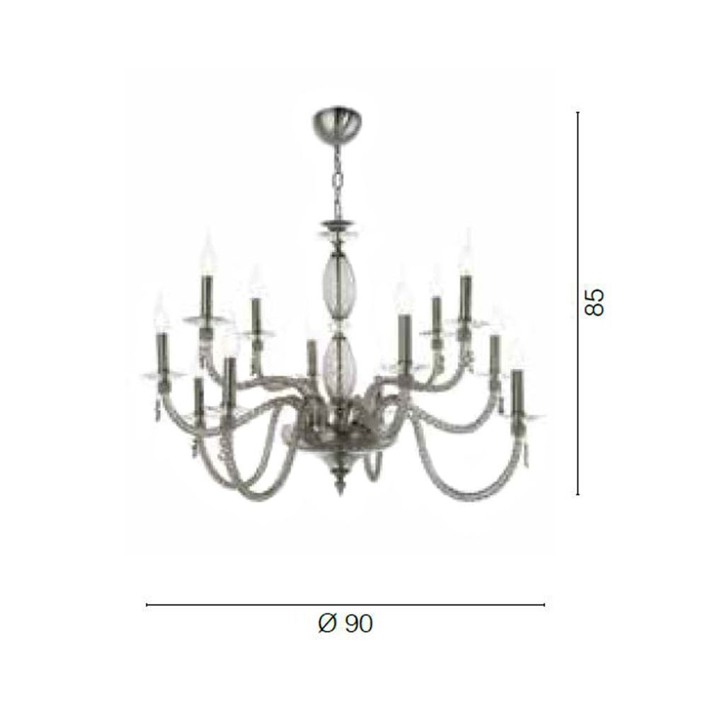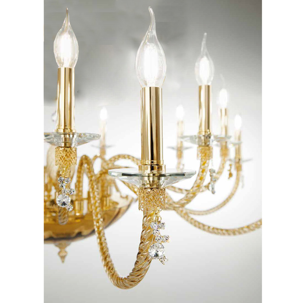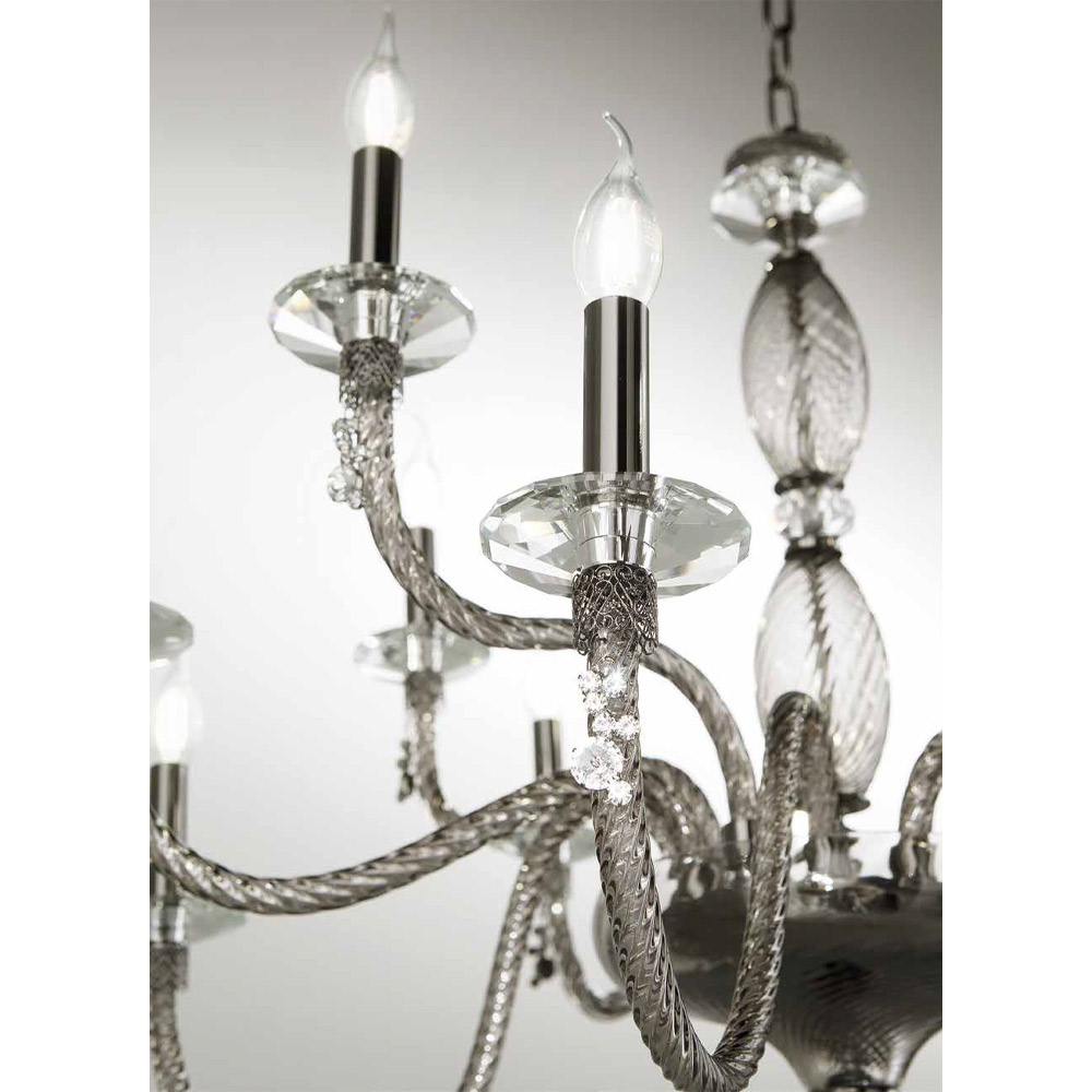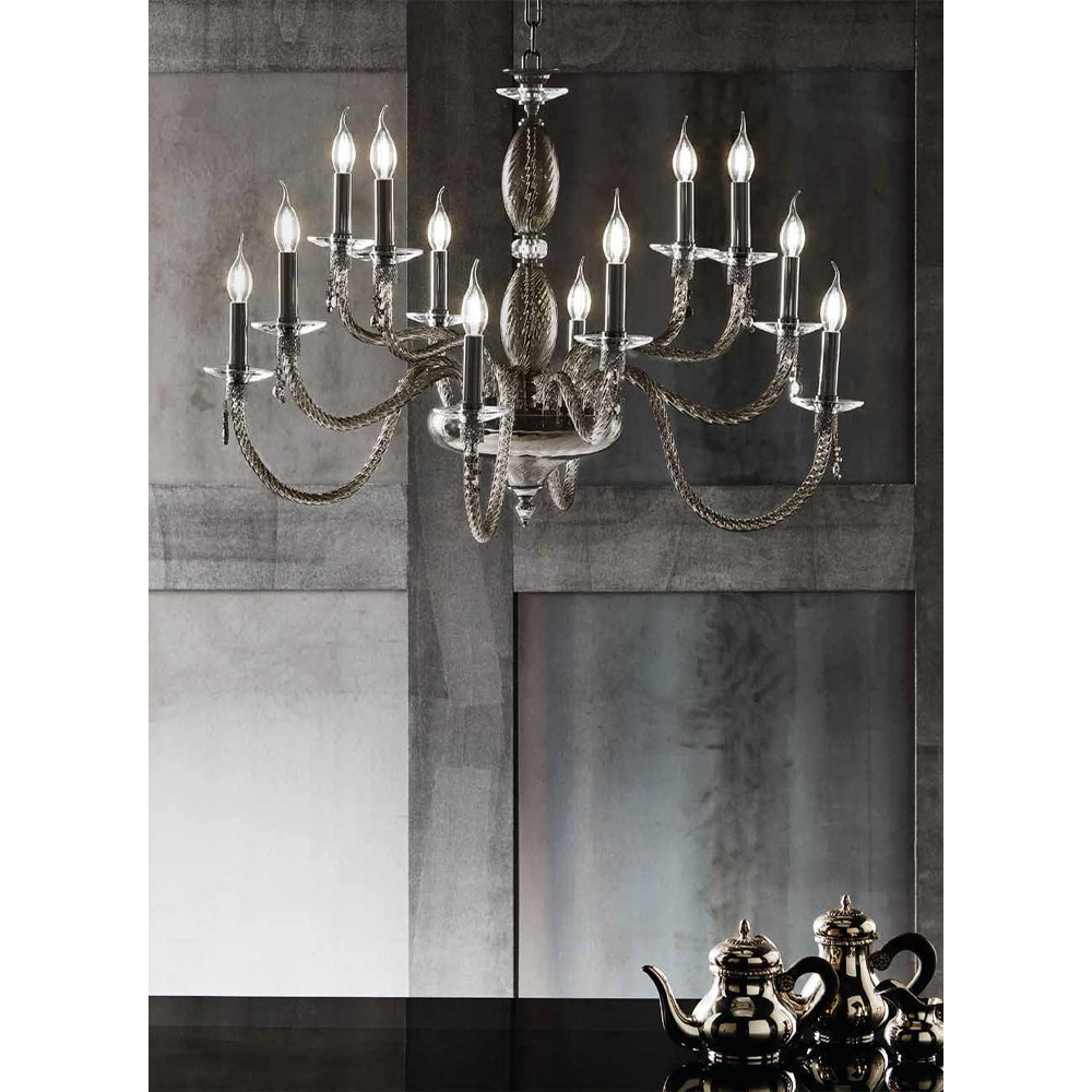 Candelabro de 12 luzes em vidro soprado e detalhes em joias, luxo italiano.