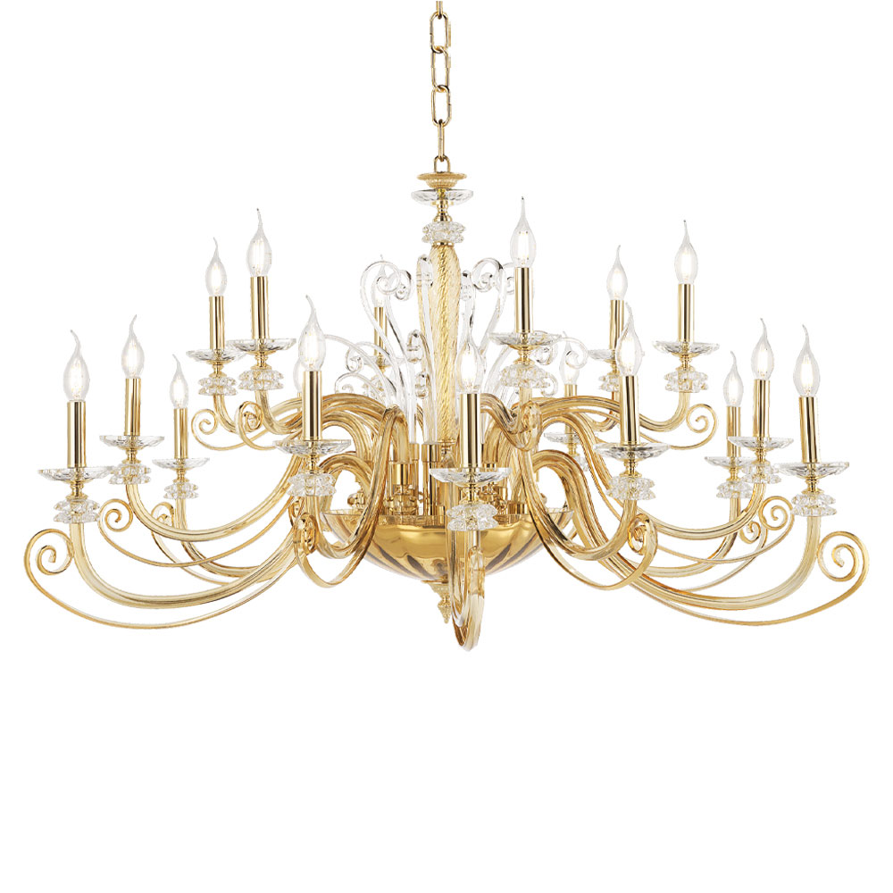 Candelabro artesanal de 18 luzes em vidro soprado e cristal óptico, luxo feito na Itália.