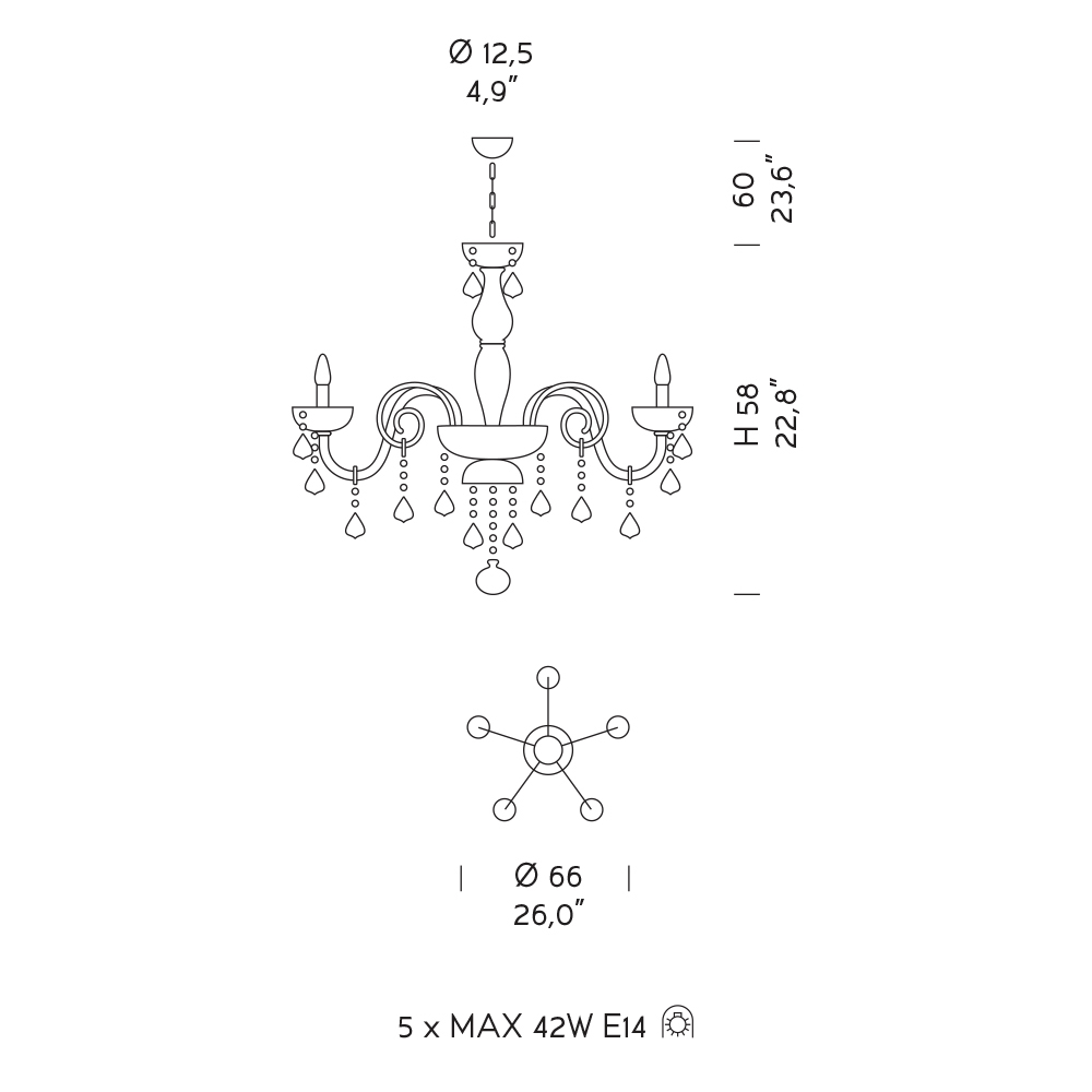Lâmpadas (não incluídas) : 5 x MAX 42W E14