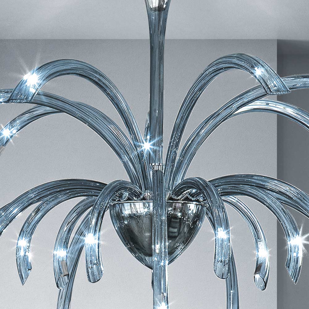 Candelabro de 21 luzes em vidro veneziano e metal artesanal Made in Italy.