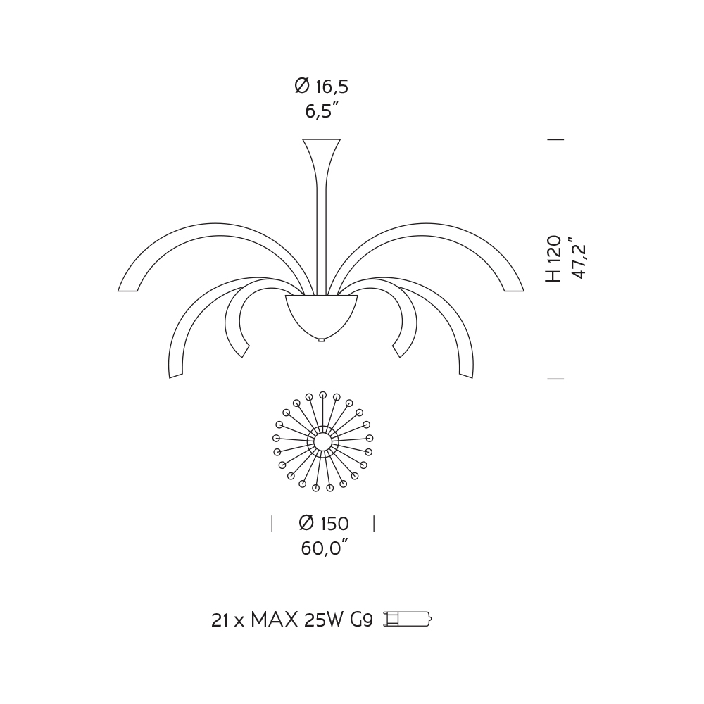Lâmpadas (não incluídas) : 21 x MAX 25W G9