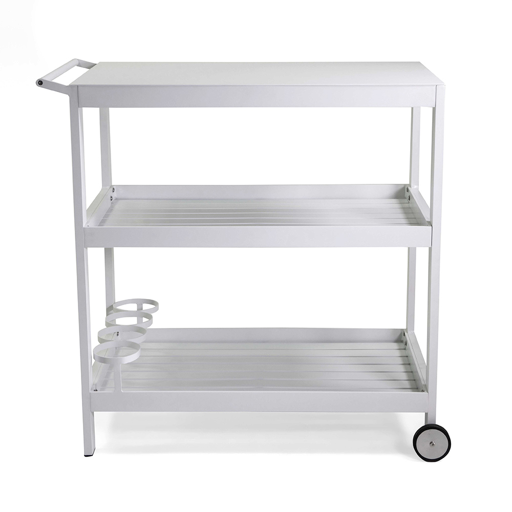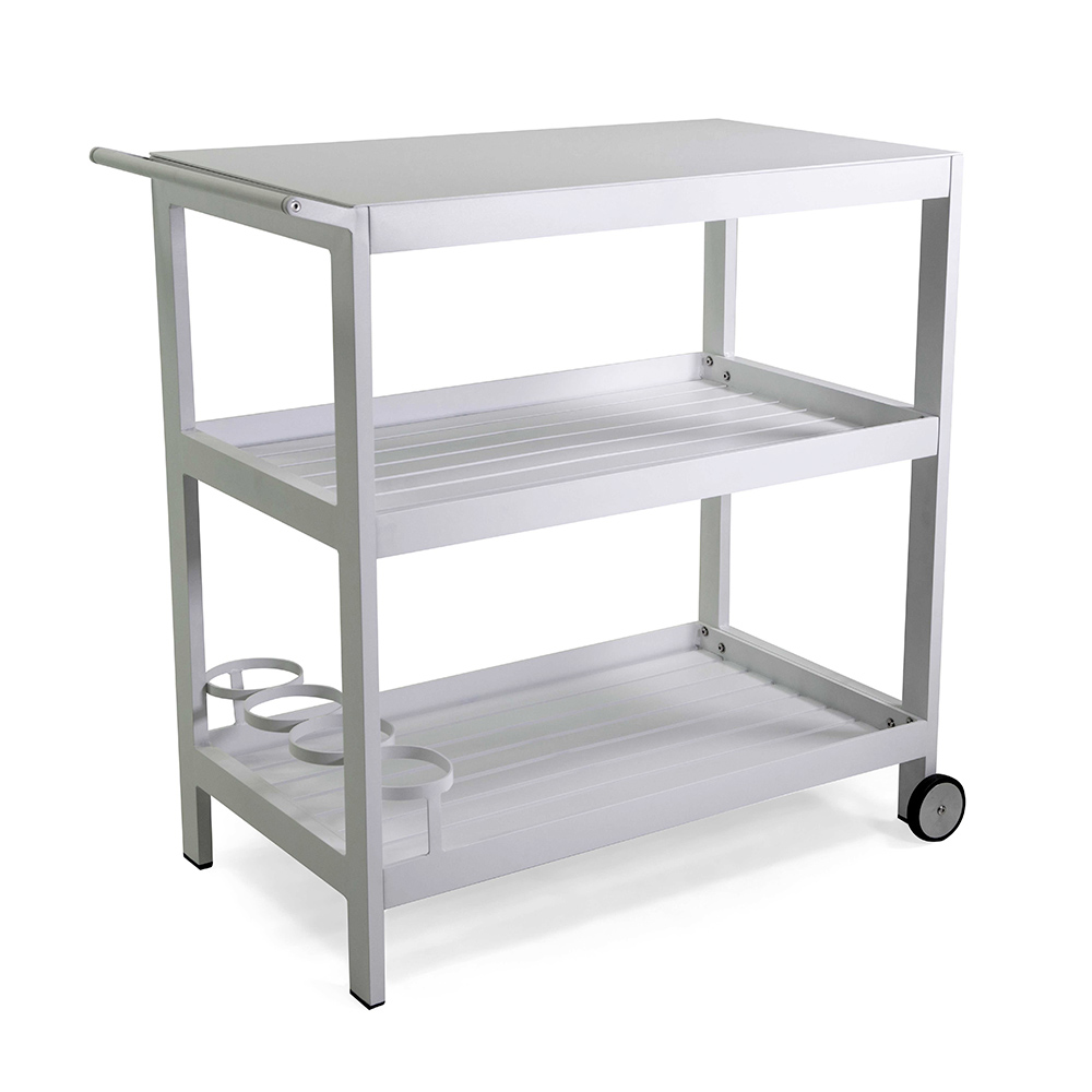 A estrutura de alumínio garante leveza e resistência à corrosão, assegurando que o carrinho manterá a sua beleza ao longo do tempo, mesmo com uso frequente no exterior. Quer se trate de uma tarde relaxante no pátio ou uma noite de entretenimento, este carrinho irá adicionar um toque de elegância funcional a qualquer ocasião.