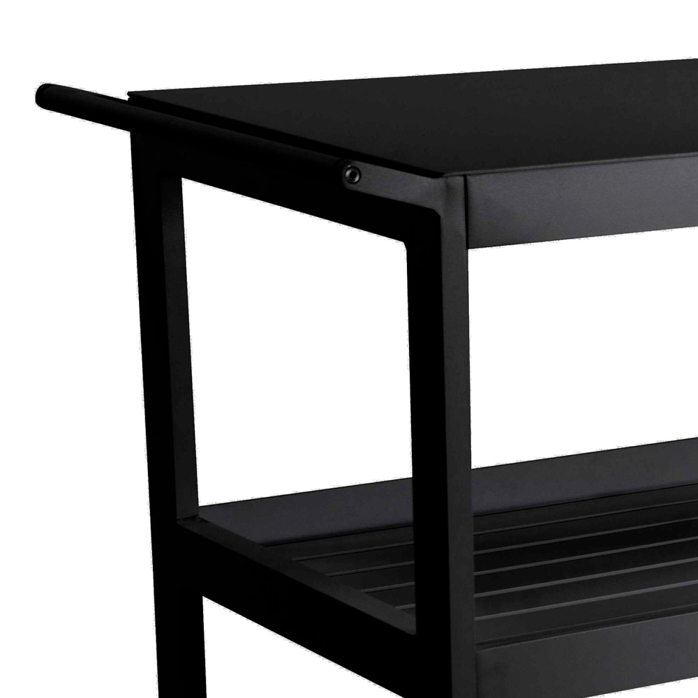 O carrinho possui três prateleiras espaçosas, perfeitas para armazenar bebidas, utensílios de mesa ou plantas, tornando-o ideal para entreter os convidados ou como um suporte adicional em qualquer espaço ao ar livre. Graças às suas rodas robustas , pode ser facilmente deslocado para onde é necessário, tornando-o extremamente prático e versátil.