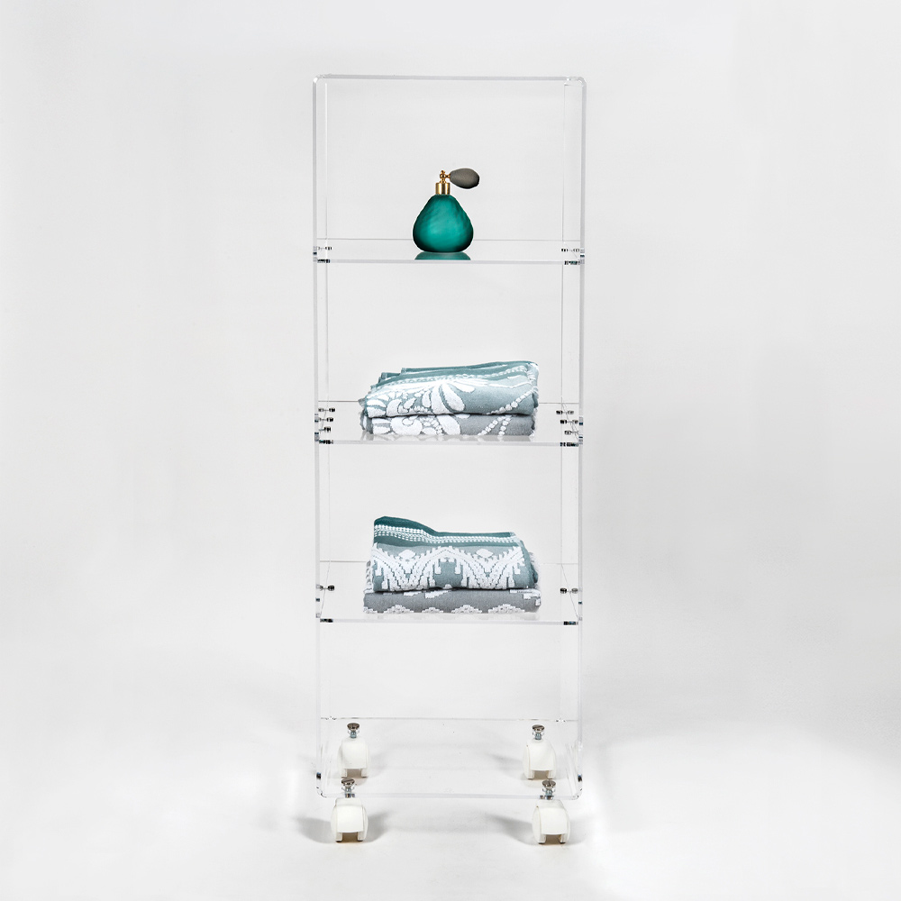 Cada prateleira deste carrinho é um palco que realça o que contém, graças à transparência cristalina do plexiglass de primeira escolha. A matéria-prima, plexiglass polimérico 100% virgem , garante um brilho e brilho que permanecem inalterados ao longo do tempo, um compromisso com a qualidade que pode ser vista e sentida.