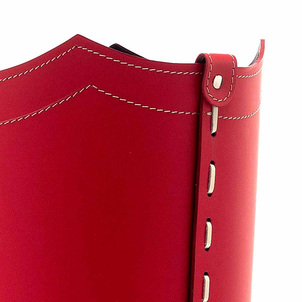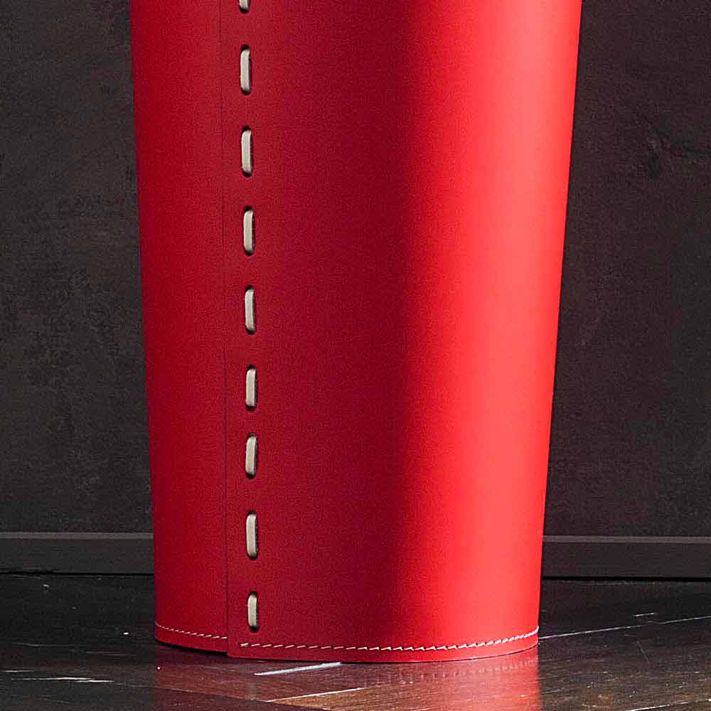 Guarda-chuva é feito de couro regenerado, tanto dentro como fora. O fundo é de compensado, que também é coberto. Dentro há uma bandeja plástica prática.