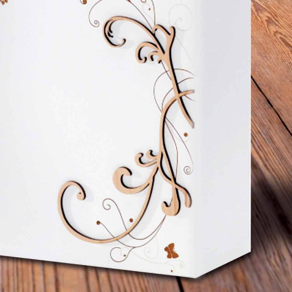 Suporte de guarda-chuva retangular elegante e moderno em madeira com motivos cortados a laser, fabricado no piso italiano.