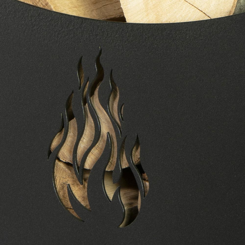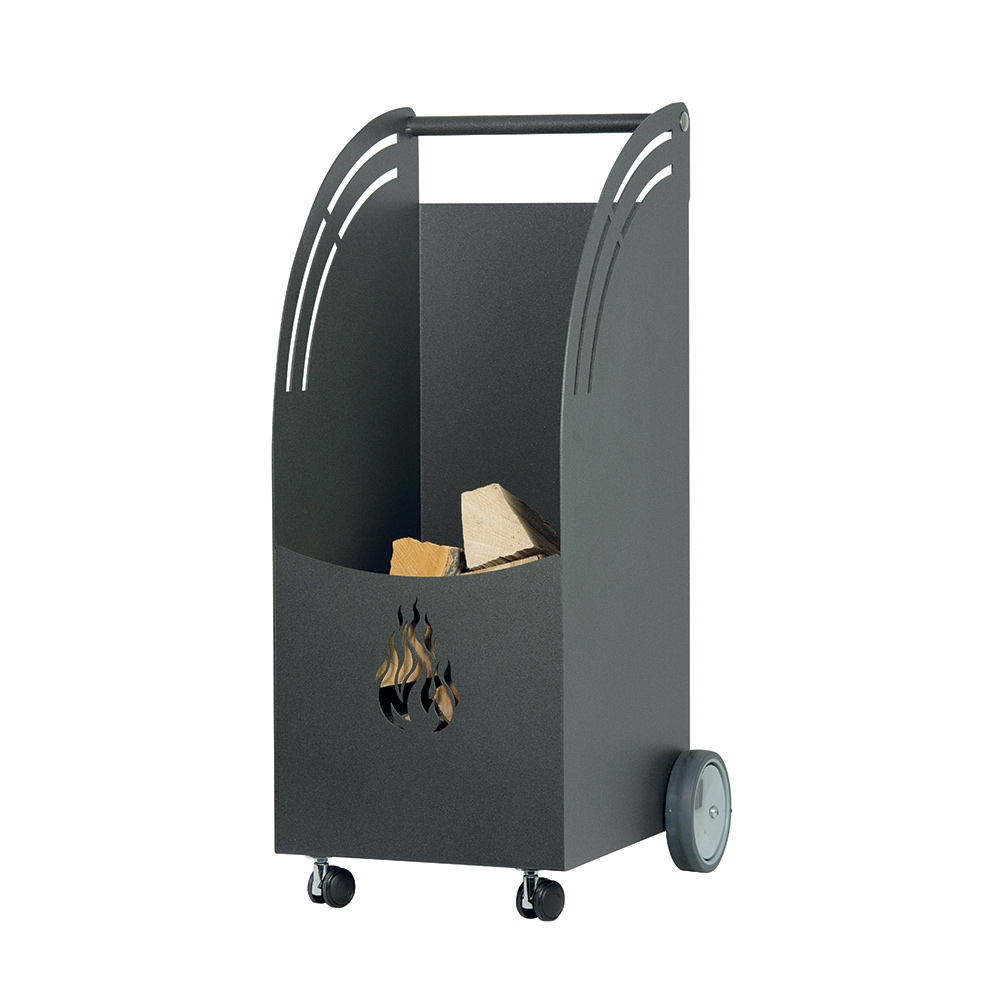 A robusta construção metálica garante durabilidade e estabilidade , enquanto as rodas resistentes e de fácil manuseio permitem movimentar facilmente o carrinho para qualquer lugar da casa, desde o depósito de lenha até a lareira. O corte da chama na parte frontal não é apenas um detalhe decorativo que evoca o calor e o conforto do fogo, mas também serve para ventilar e manter a madeira seca.