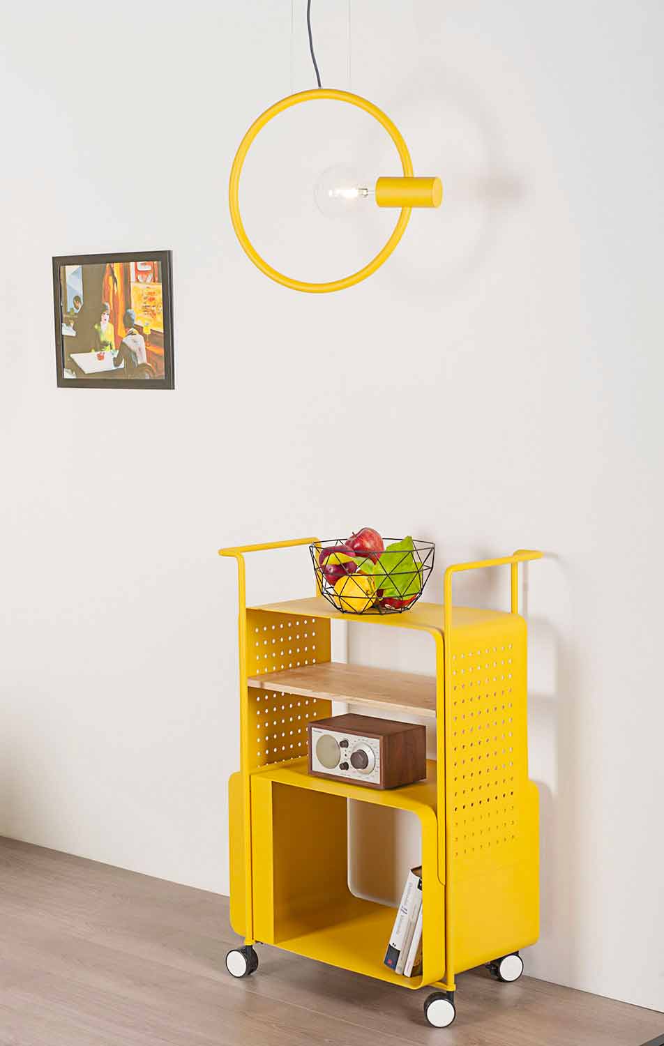 carrinho representa um elemento particularmente versátil, pois pode ser utilizado em diversas situações e ambientes como a cozinha, a sala de estar ou mesmo o escritório. Graças ao seu design jovem e moderno, é ideal para ambientes com móveis extravagantes e incomuns, mas também para estilos mais minimalistas para dar cor e personalidade. Totalmente