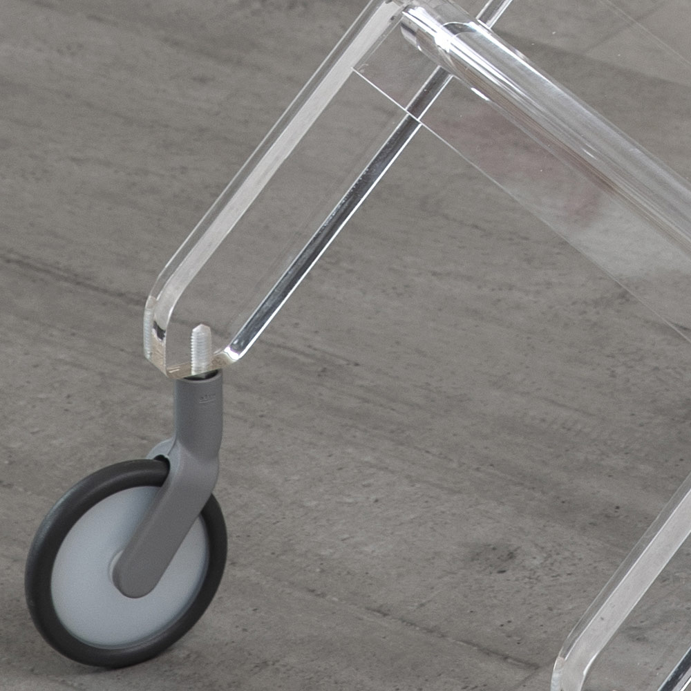 Carrinho dobrável em acrílico transparente com rodas com design made in Italy.