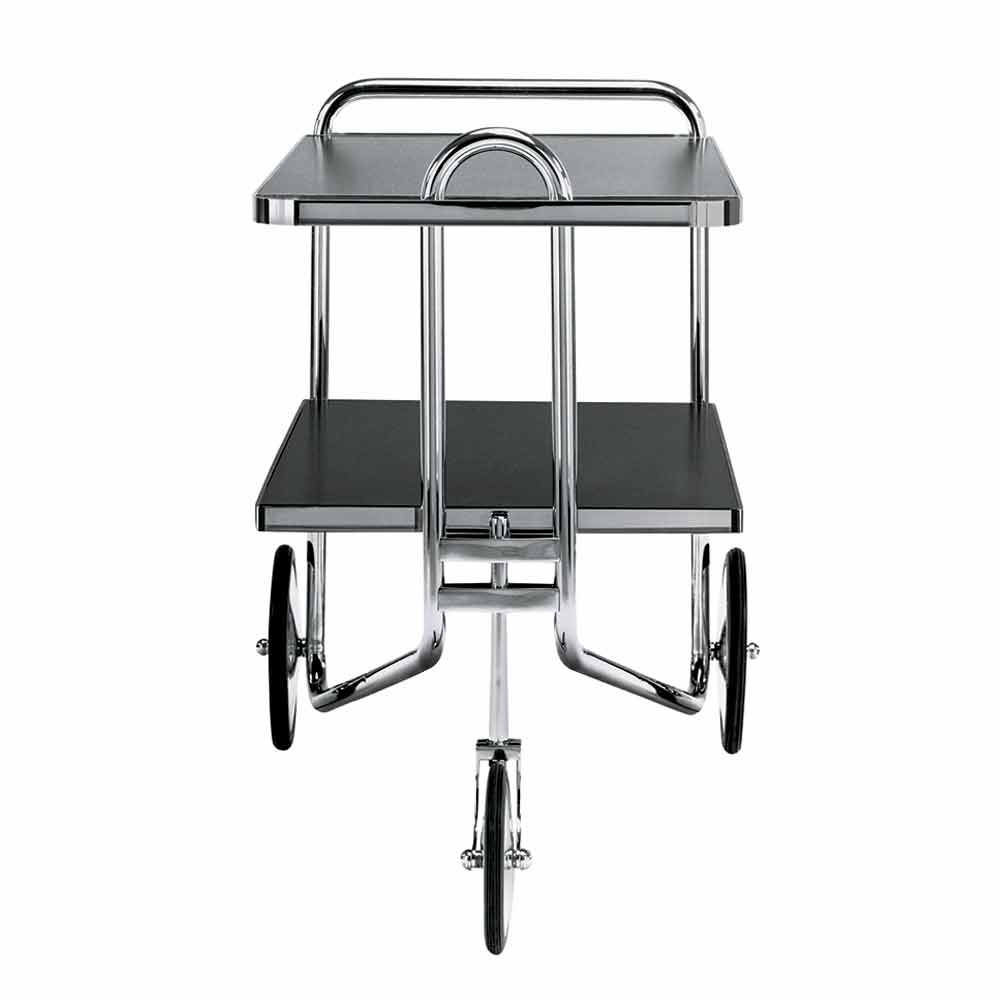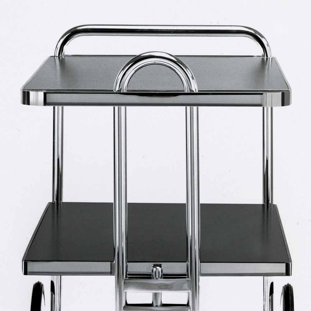 Carrinho para alimentos em aço cromado com prateleiras em laminado preto Fabricado na Itália.