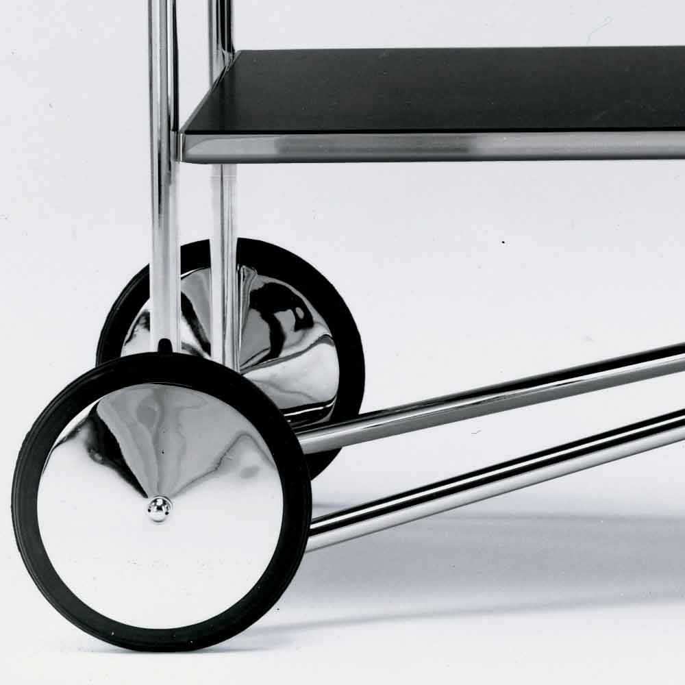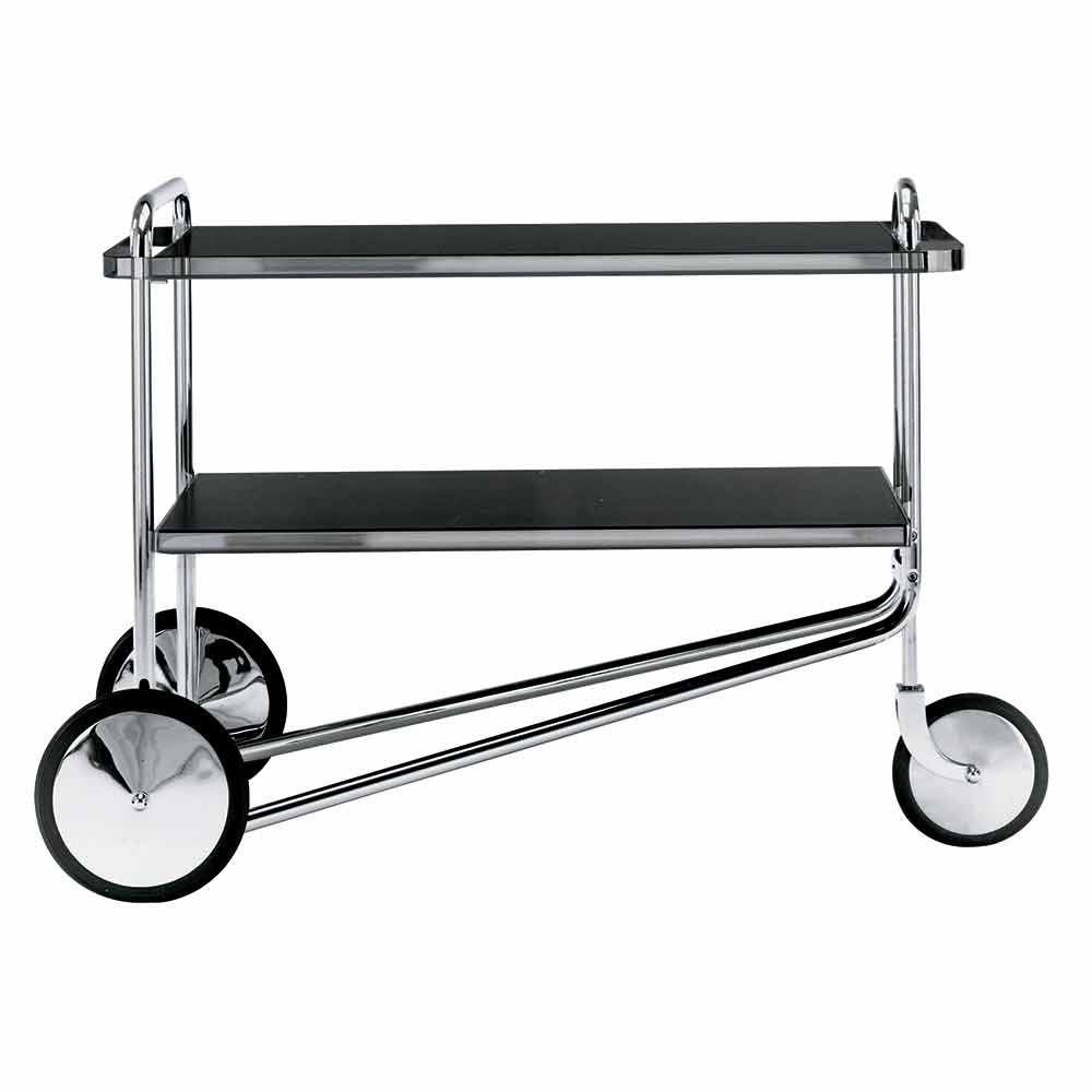 Carrinho para alimentos com estrutura em aço cromado equipado com 3 rodas e duas prateleiras em laminado preto. Praticidade e design se unem para dar vida a um móvel altamente funcional e auxiliar no ambiente doméstico, cuja utilização é facilitada ainda mais pelas práticas rodas que permitem sua movimentação rápida e fácil. Além de um lado puramente funcional, este carrinho de comida oferece uma estética inovadora e requintada ideal para quem deseja completar seus móveis com um toque de novo estilo .